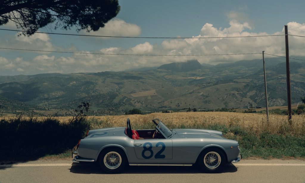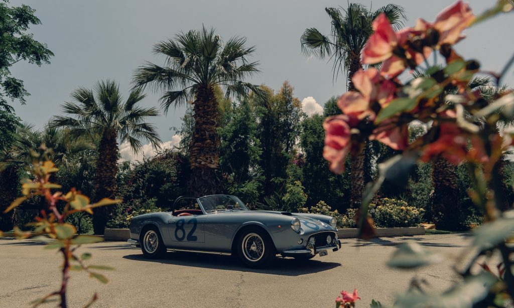 Több mint hat évtized alatt átesett már pár restauráláson, de a legutóbbi alkalmával állították vissza a Targa Florióhoz passzoló állapotot, így a 16 colos fűzött felnik helyett 15 colos Borrani kerekeken gurul a California Spider, aminek keményteteje és nyitható vászonteteje is megvan az autóhoz. Most azonban a futamra felkészített formájában van, ezért egy lecsavarozható bukókeret van rajta és a nyolcvankettes rajtszám. Ilyen történettel egy ennyire ritka és kedvelt veterán Ferrari hamar több millió dolláros gyűjtői kinccsé változik.