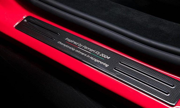 a különkiadás lényegét pedig a küszöbön lévő plaketten olvashatjuk. Megrendelték az autóhoz az egyébként opciós négypontos biztonsági öveket és a szénszálas anyagból készült kerekeket is, az Assetto Fiorano csomaghoz tartozó karbon elemekkel, egyedi lengéscsillapítókkal és Michelin Pilot Sport Cup 2 R abroncsokkal.