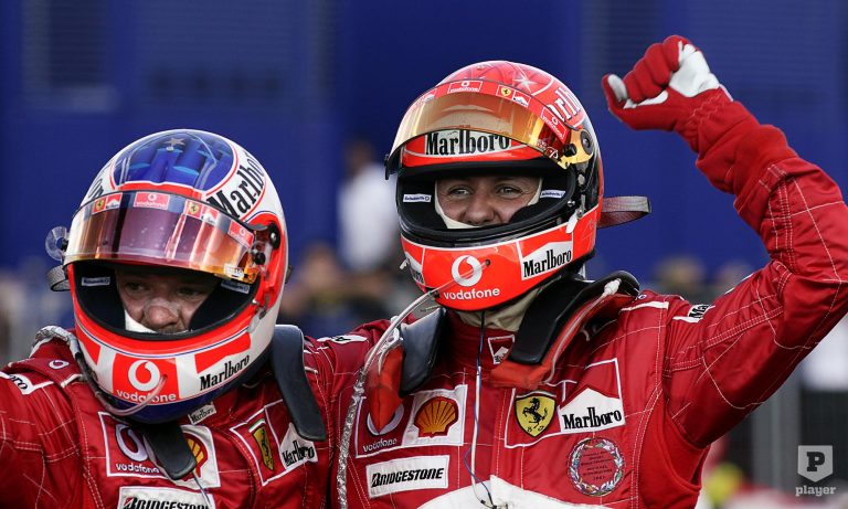 Michael Schumacher és Rubens Barrichello kettős győzelmet aratott a Hungaroringen az F2004-es versenyautójukkal, és ez történelmi pillanat volt a Ferrari számára.