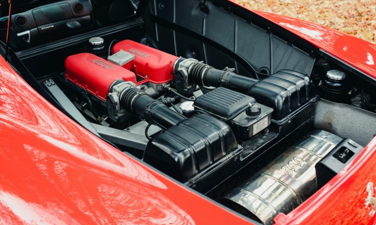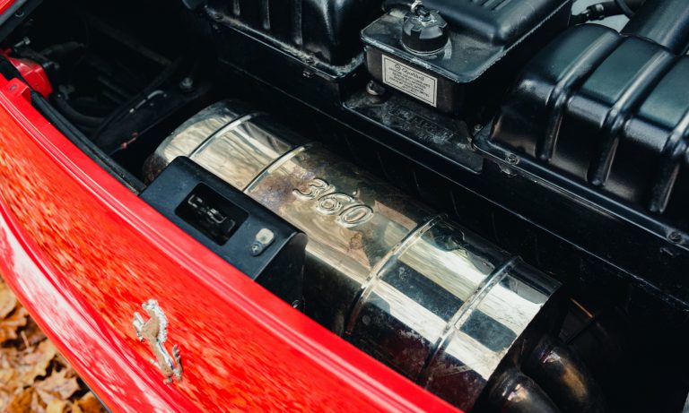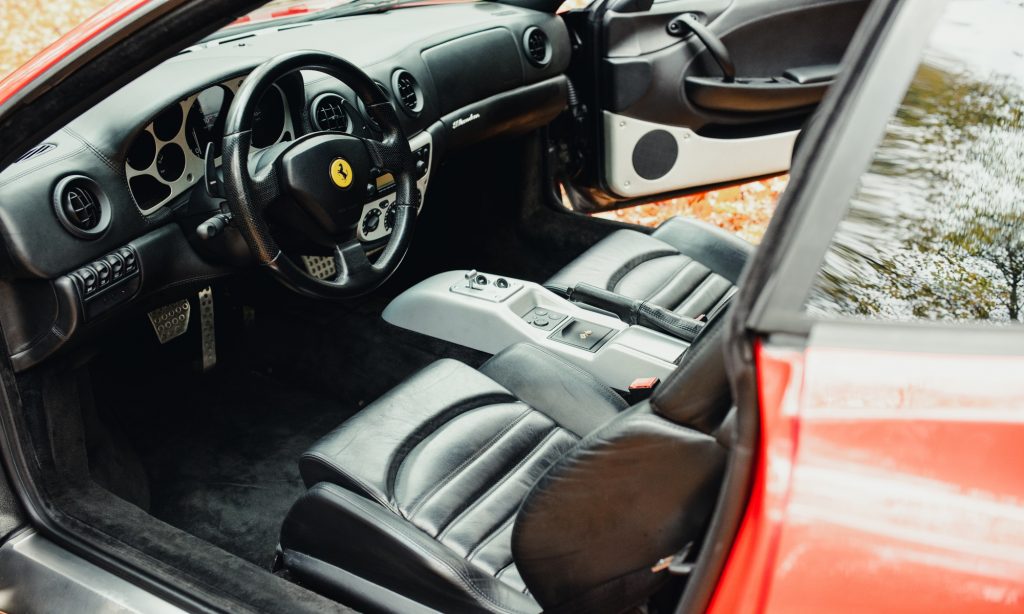 51 814 kilométert mutat a piros fényezésű, fekete bőrrel kárpitozott 360 Modena órája, melyet az utóbbi években újítottak fel tökéletes állapotúra, miután a beltéri gombok elkezdtek ragadóssá válni. Most viszont újra makulátlan állapotában lehet élvezni, akár nyitott tetővel is.