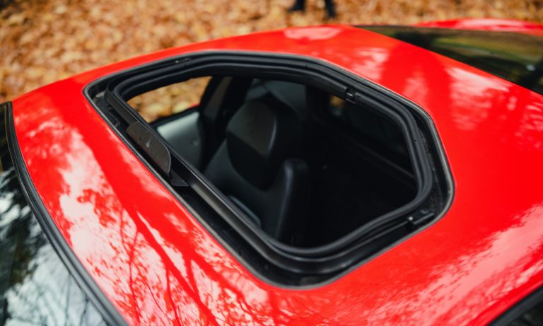 Mivel a sportautó teteje rövid, ezért a hátracsúszó üveg nem jöhetett szóba, így az olaszok egy retesszel oldható, kivehető panelt terveztek erre a célra. A furcsa alakú elemet az ülések mögött lehet elhelyezni az erre a célra varrt bőrtáskában.