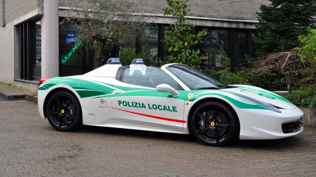 Egyáltalán nem rendőrautóként kezdte karrierjét ez a 458 Spider, a Ferrarit ugyanis bűnözőktől foglalták le a milánói rendőrök. A legutóbbi akciójuk során összesen 29 autót kaparintottak meg a rosszfiúktól, és ahelyett, hogy elárverezték volna őket, ahogyan ilyenkor szokás, inkább megtartották maguknak. Az olasz törvények megengedik, hogy a bűnözőktől lefoglalt autókat használatba vegye a rendőrség.