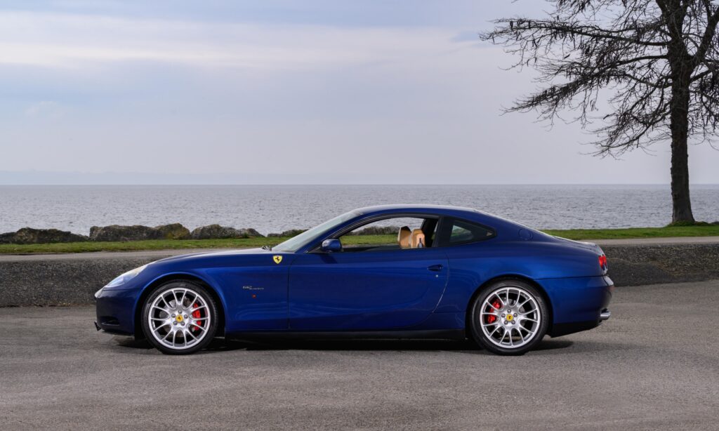 Gyönyörű kék színével és bézs bőrrel kárpitozott utasterével igazán elegáns ez a 2004-es Ferrari 612 Scaglietti, melyet valójában a hatfokozatú kézi váltó tesz különlegessé.