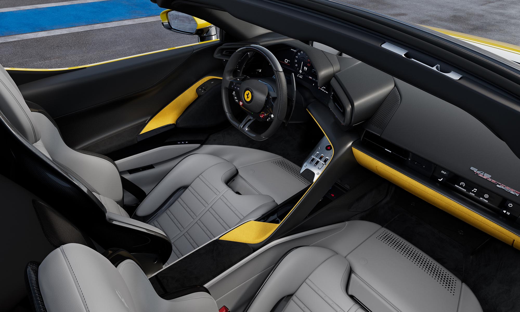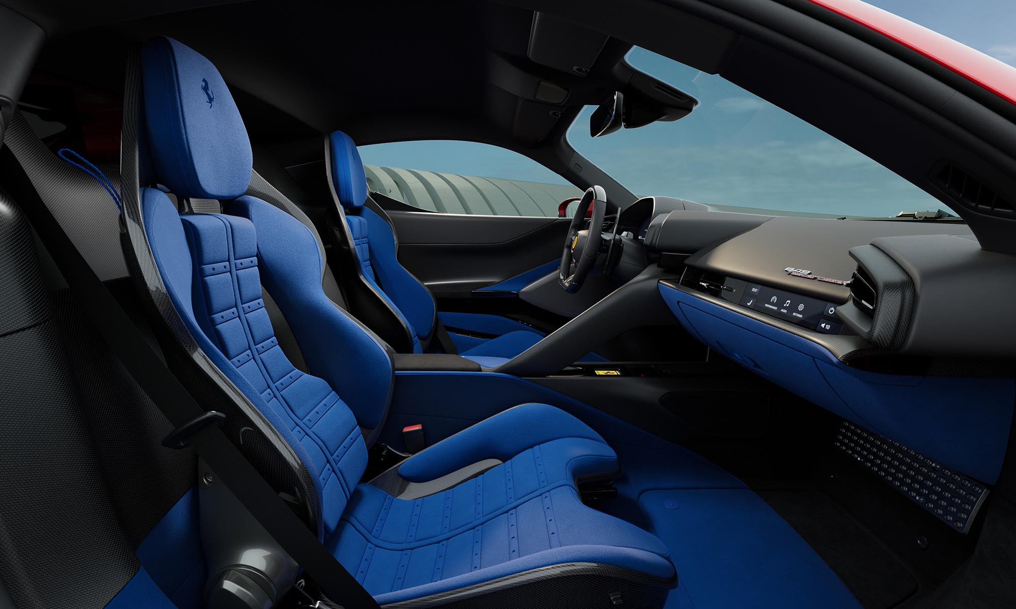6,4 másodperc után éri el a kétszázas tempót, és 330 km/óra a végsebessége. A Ferrarinál sokat dolgoztak rajta, hogy a vezethetősége még ütősebb legyen, mint az SF90-nek, ebben pedig az elektronikának ezúttal is nagy szerepe van. Nem elhanyagolandó az sem, hogy 250 km/óránál 415 kilogramm leszorítóerőt termel, 25-tel többet az elődjénél.