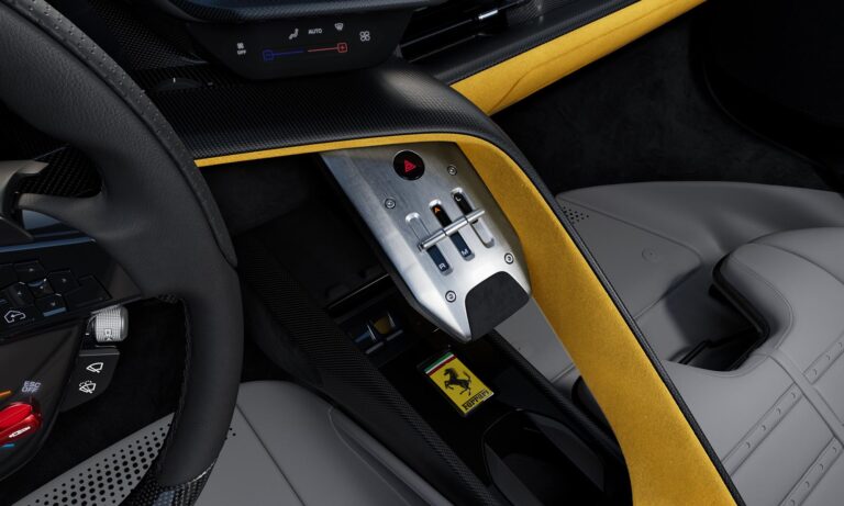 A V8-as motorját két turbóval izmosították 830 lóerőre, ehhez jön a hátsó kerekeknél kettő, az elsőknél egy elektromotor, ami 1050 lóerőre növeli a teljesítményét, ötvennel többre, mint az SF90-nek. Nem mintha tisztán elektromosan akarnánk menni vele, de a 7,5 kilowattórás akkumulátort feltöltve 25 kilométert képes csendben suhanni az autó.