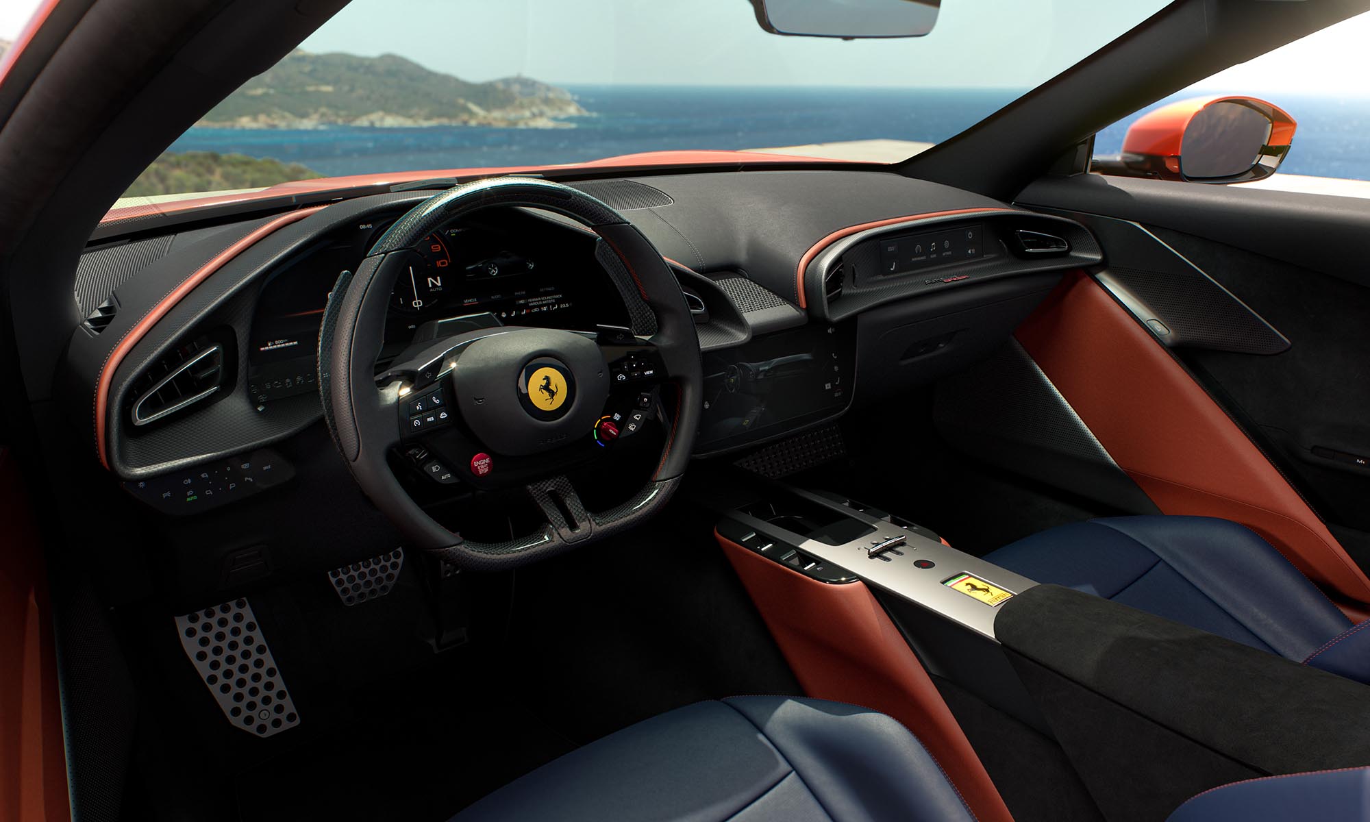 A vezetés élményét a legmodernebb elektronika felügyeli, ami összehangolja a kormányzást, a nyomatékelosztást és az elektronikus differenciálművet. Az aktív aerodinamika része a három állásba kapcsolható hátsó légterelő, a Ferrarinál pedig a száguldás kényelmére is gondoltak, ezért egy gombnyomásra felhúzható a hátsó ülések mögé integrált szélvédő, amelyet 170 km/óráig lehet előhívni.