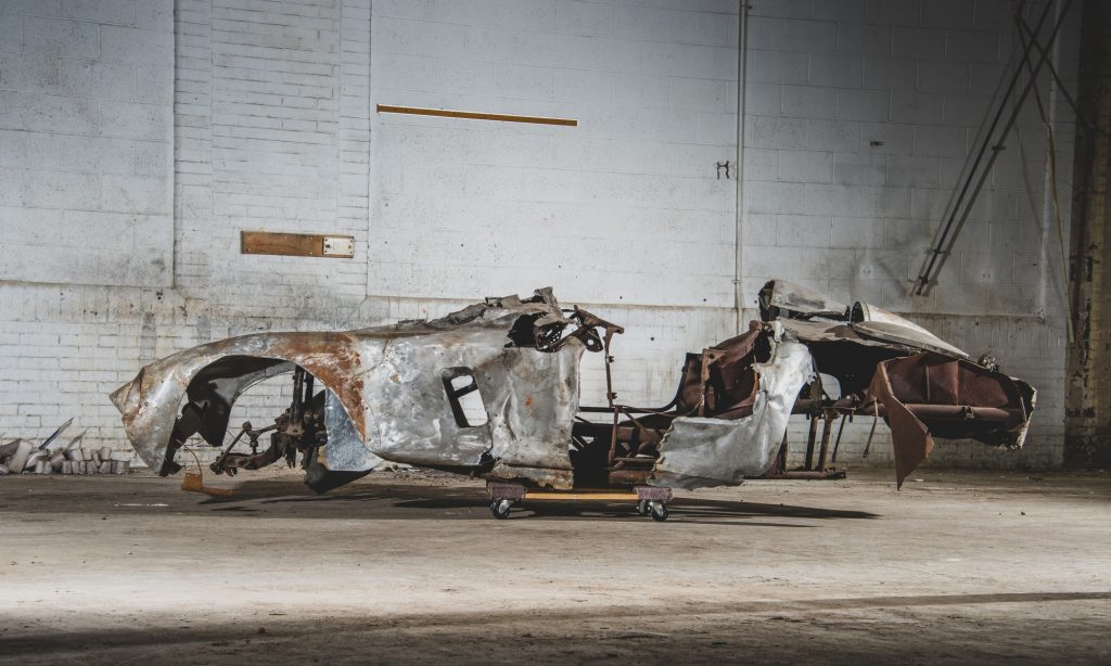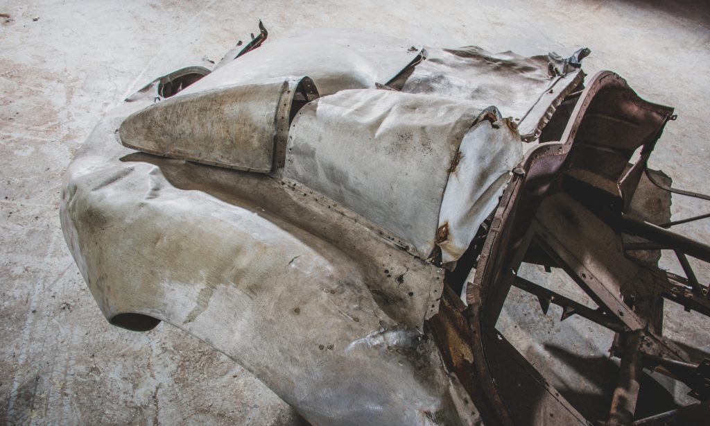 Egyesek szemében már csak egy kupac fémhulladék a Ferrari 500 Mondial Spider, pedig akár 1,6 millió dollárt is érhet a roncs.