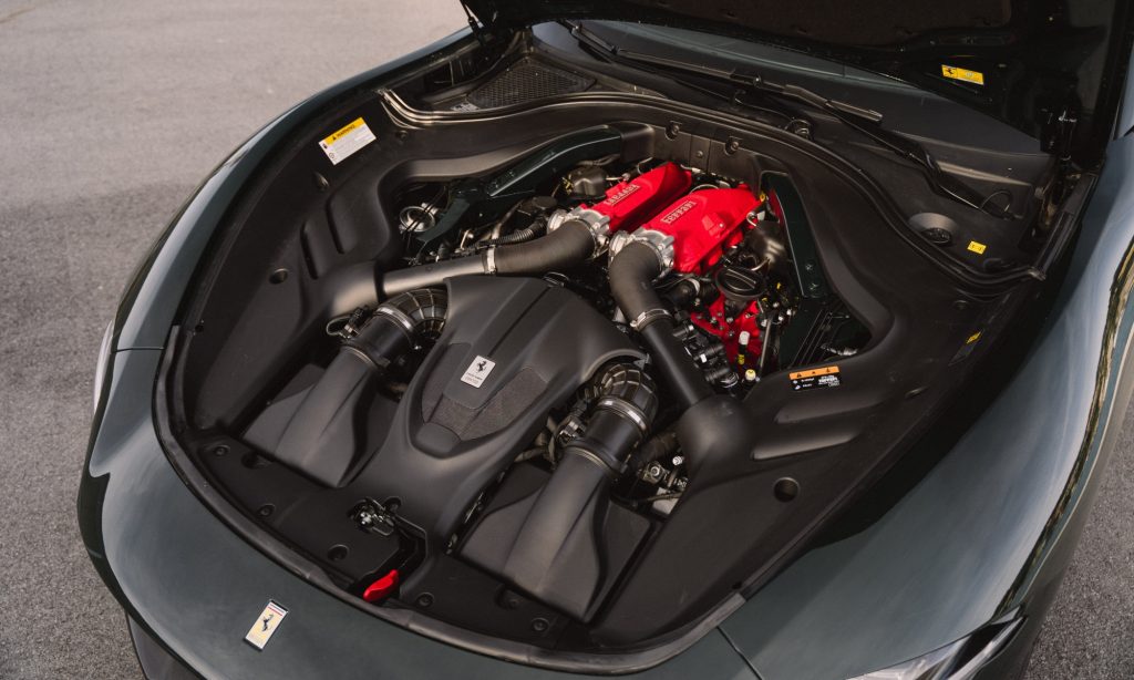 Ez teszi olyan különlegessé ezt az egészen friss Ferrari Romát, mely ezzel a zölddel és a csokoládészínű bőrkárpittal igazán úri hangulatú sportkupé lett. A Ferrari orrmotoros kupéjának formaterve a 60-as évek világát idézi, ezért több részlet is felfedezhető, mely a híres 250 GTO-ra emlékeztet.