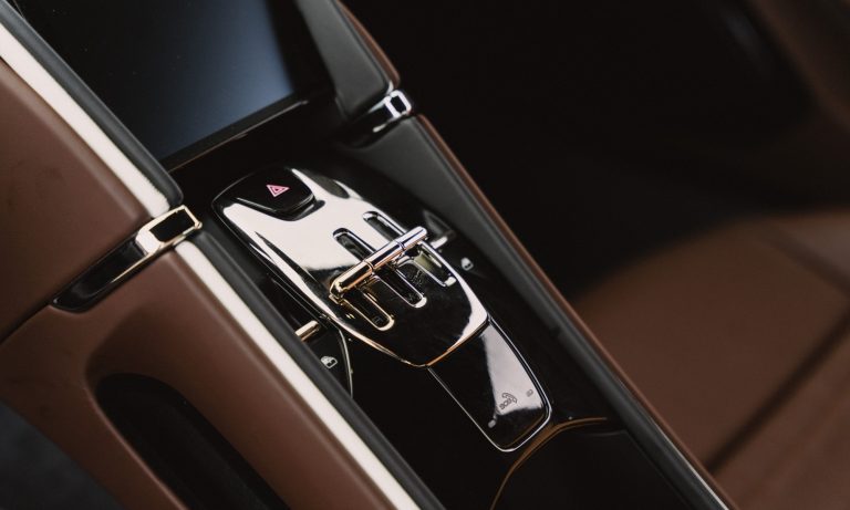 Szépen kiegészítik a látványt a hegyes cápaorrán lévő vékony LED-es fényszórók és a modern karbonelemek, valamint a négy kipufogócső, amit méretes hátsó diffúzor vesz körbe. A múlt és a jelen keveredik a kétszínű bőrrel kárpitozott utastérben is, ahol a nyolcfokozatú automata váltó kialakítása a régi nyitott kulisszás kézi váltókat idézi.