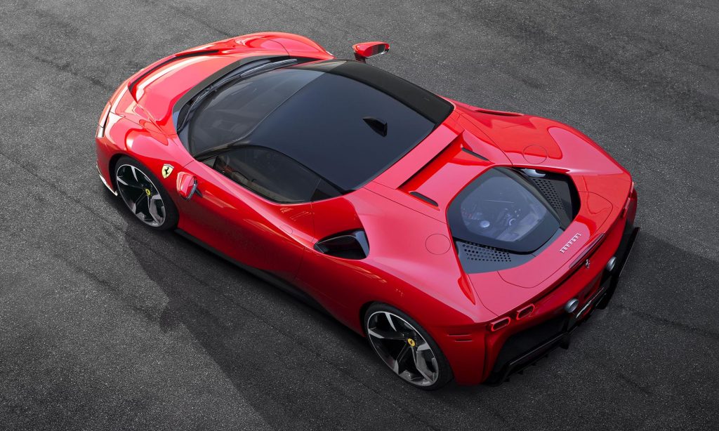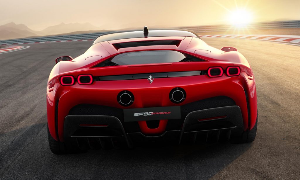 Az egyik elektromotort az új nyolcfokozatú duplakuplungos váltóval építették egybe, a másik kettő pedig az első kerekeket forgatja. Az SF90 Stradale ezzel összkerékhajtású, és ha nem is az első hibrid, de az első konnektorról tölthető Ferrari,