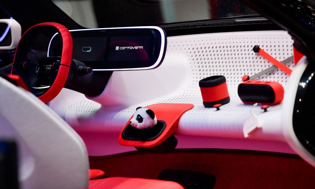 A hátfalon is egy kijelző van, amire saját üzenetet, vagy akár reklámfeliratot is ki lehet íratni. Az eredeti Panda hűtőmaszkját idéző függőleges csíkok a Centoventi orrán a töltöttséget jelzik,