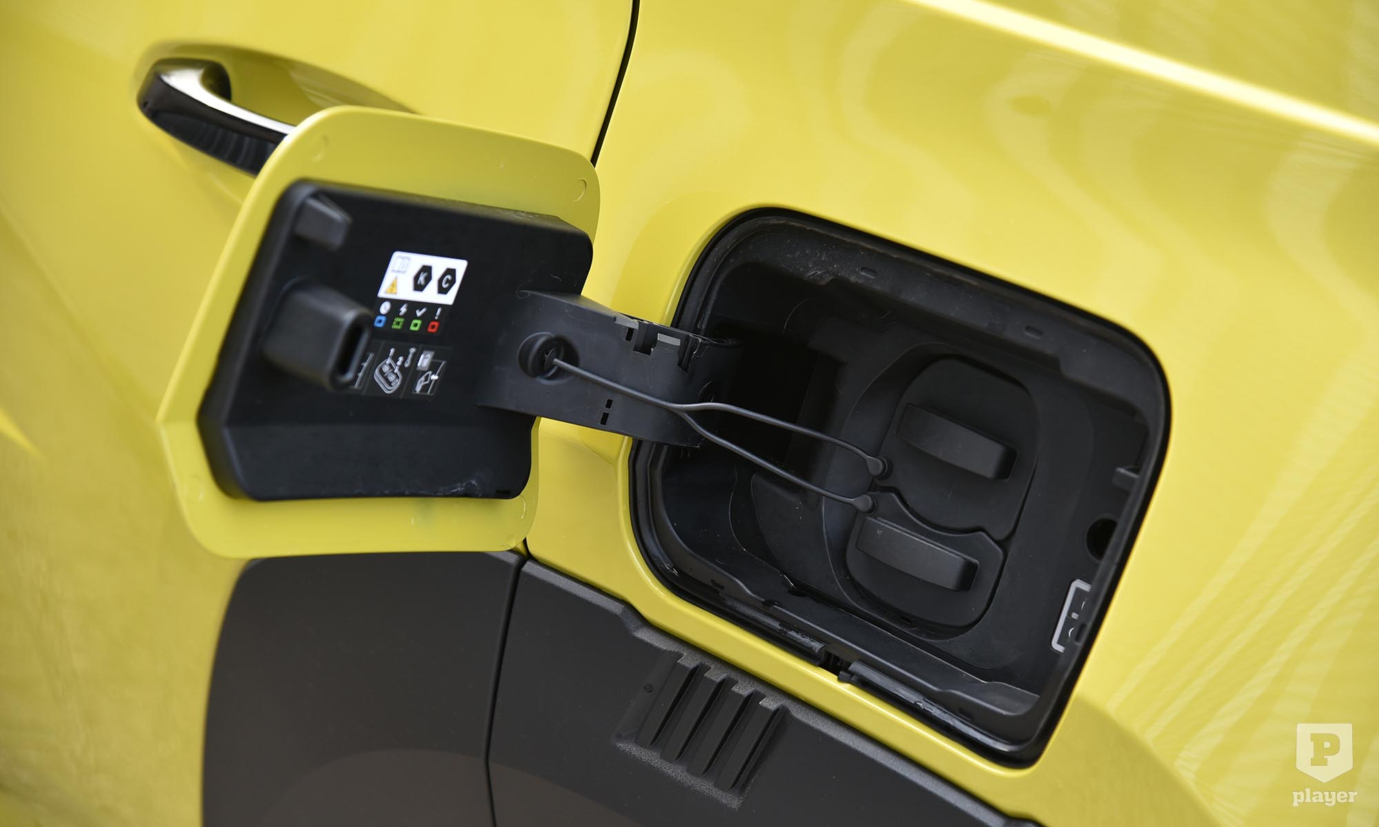 Az elektromos változaton – a Grande Pandából létezik háromhengeres, turbós benzines mild hibrid is – a Fiat feliratnál van még egy zseniális megoldás, aminek nagyszerűségét mindenki értheti, aki bajlódott már töltőkábellel: porszívózsinór-szerűen kihúzható-visszagyömöszölhető, régi telefonzsinórokhoz hasonlóan spirális töltőkábel jár. Igaz, ez csak 7 kilowattos töltésre képes – max. 100 kilowattos gyorstöltéshez a bal hátsó sárvédőben találjuk a csatlakozót –, de az akkumulátoroknak is kíméletesebb normál tankolást jelentősen megkönnyíti.