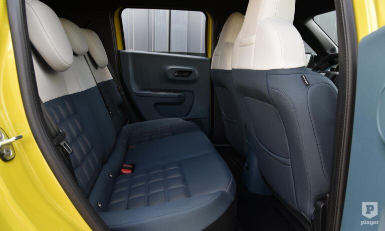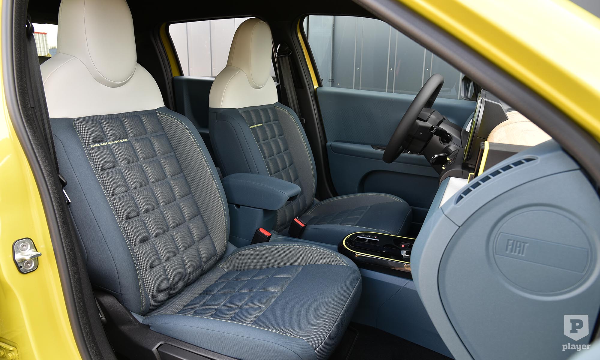 A régi Pandánál egyszerűbb üléseket már sámlinak hívják, ehhez képest a Grande Panda ülései szuperkomfortosak, de nem ahhoz képest is kényelmesek, négyzetes mintájukkal hasonlítanak az eredetikre. Hivatalosan ötszemélyes az autó, normál méretű felnőttekből viszont magunkon kívül inkább hármat ültessünk be, akkor a hátsó utasok sem élik majd meg büntetésként az autózást.