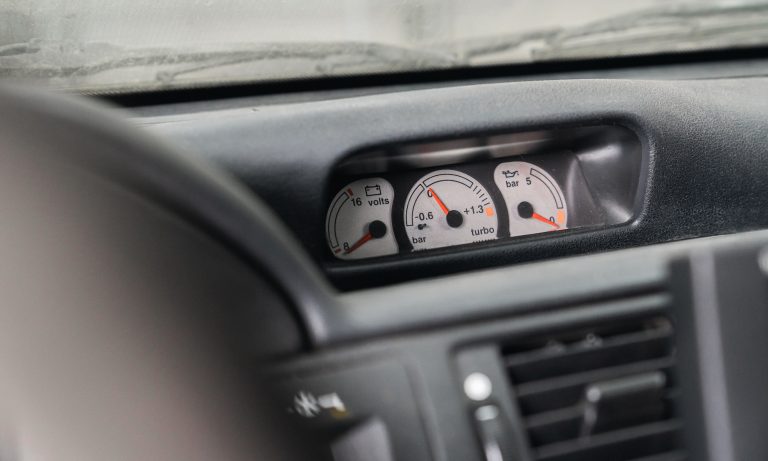 Sparco középjelzős kormánnyal és Recaro sportülésekkel igazi szerpentinre való hétvégi játékszernek tűnik az Escort RS Cosworth, melyet csak kedvesebbé tesznek a 90-es évek kiegészítői. A középkonzol mellett ágaskodó navigációs kijelző nagyon érdekes párost alkot a fehér számlapos kiegészítő műszerekkel.