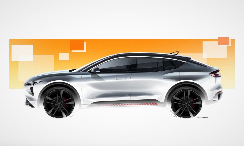 amivel egy kicsit a Mustang Mach-E stílusát is idézik. A legújabb divat szerint osztott a fényszóró és fénycsíkkal kötötték össze a hátsó lámpákat, és egyre több új autóhoz hasonlóan az Evos kilincsei is a karosszériába simulnak.