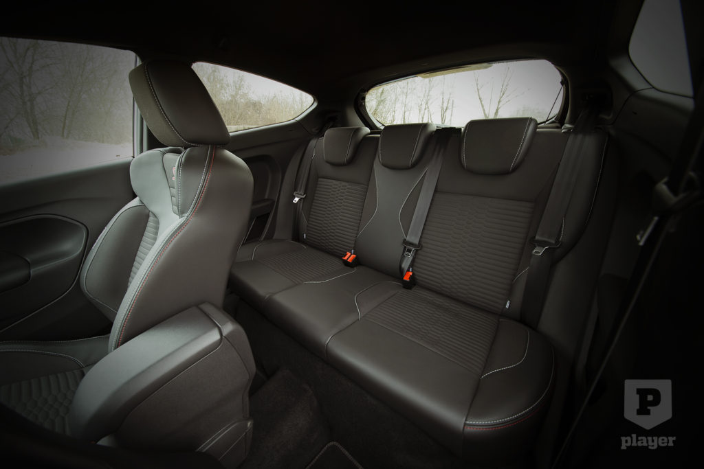 Három ajtaja kinyitva kertkapu méretű ugyan, de ettől még nem lesz belőle családi autó. A Recaro ülésekbe egyszerűen nem lehet belekötni (csak bele kell huppanni és kész), bár hosszú távon a betonkemény sportfutóműnek hála ez is kevés a komfortérzethez. Ugyanakkor lássuk be, ez senkit sem keserít el, nem a portugál tengerpartra szokott indulni az ember egy ilyen autóval.