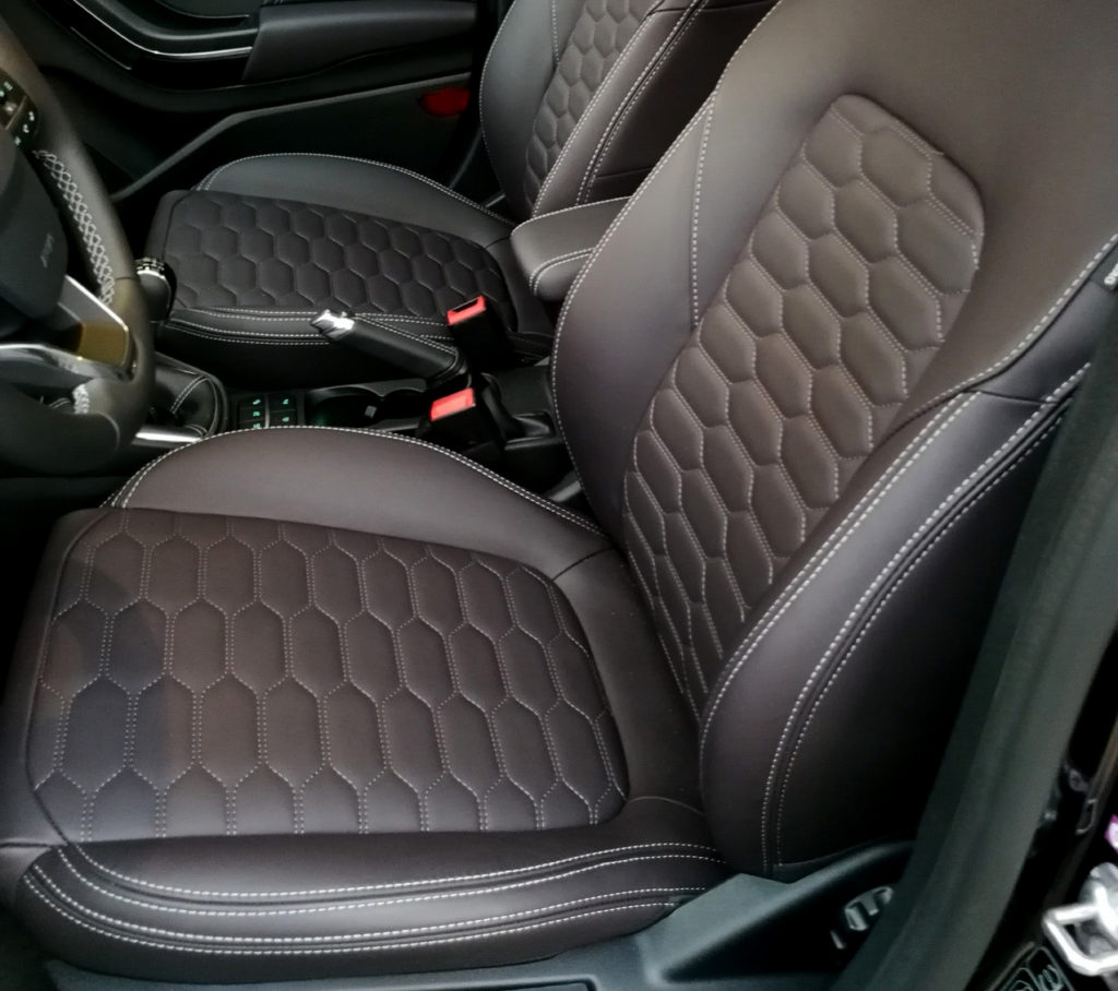 A Vignale csomag képviseli a luxust a Fordnál, és ez gyönyörűen tükröződött is ebben a feketére fújt, belül bordós lilával felhúzott Fiestában: