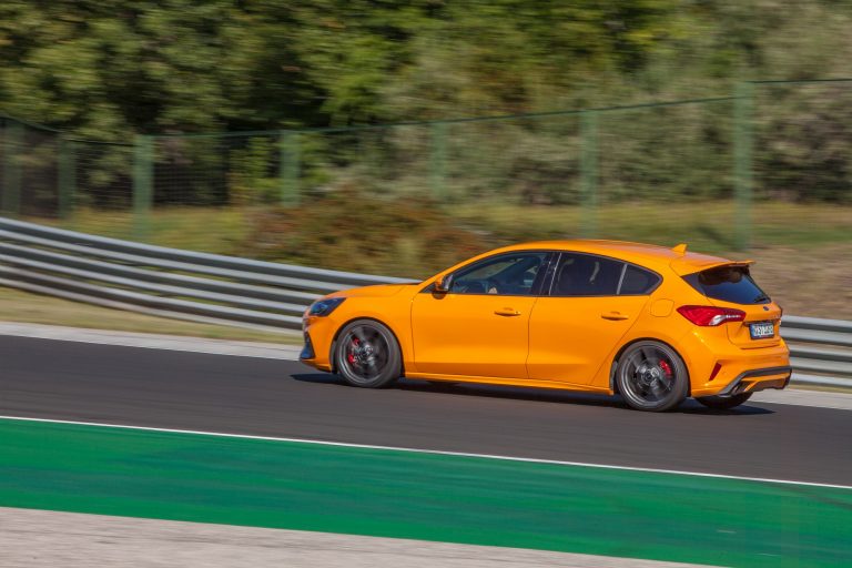Megjárattuk volna azért körben, időre is. Mert bár az ST nem akar igazán vad lenni – az az RS hatásköre –, és inkább azoknak szól, akik egy mindennapokban durva kompromisszumok nélkül használható autót is akarnak, hozza az elvárható sportossági szintet. Nem narancssárga színben is kellően, de nem túlzóan feltűnő, ennyi kell is, elvégre ez a valaha volt legerősebb ST. A 2,3 literes Ecoboost az első kerekeket hajtja, ami nem hangzik annyira jól, de ha az RS-nek is sokáig megfelelt, nekünk sem kell panaszkodnunk.