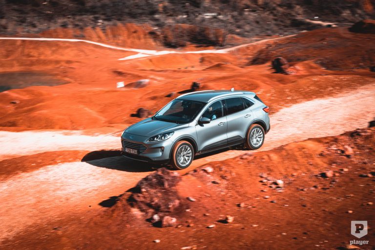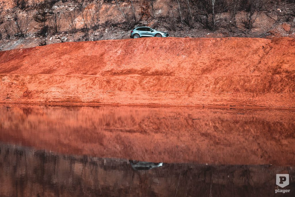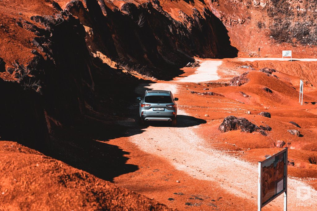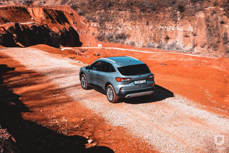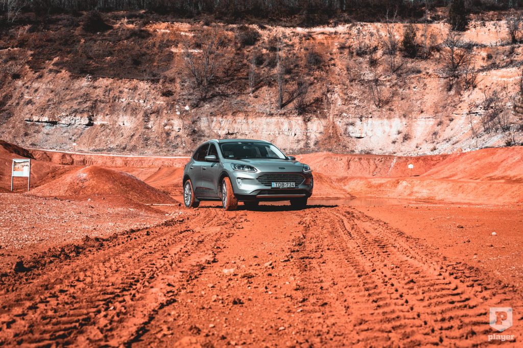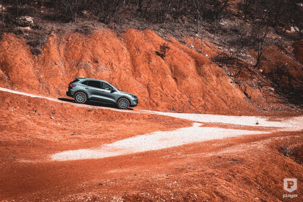 Adott az 1,1 kilowattórás kapacitású akkumulátor és egy 2,5 literes benzinmotor, azaz a 190 lóerő összesített rendszerteljesítményű Kuga, másfelől meg a durván 28 méter magas bányafal, és a dolomit alapkőzet sárgás-vöröses, olykor lilás árnyalatai. Marsbéli táj a Vértes-fennsík bércei közt,