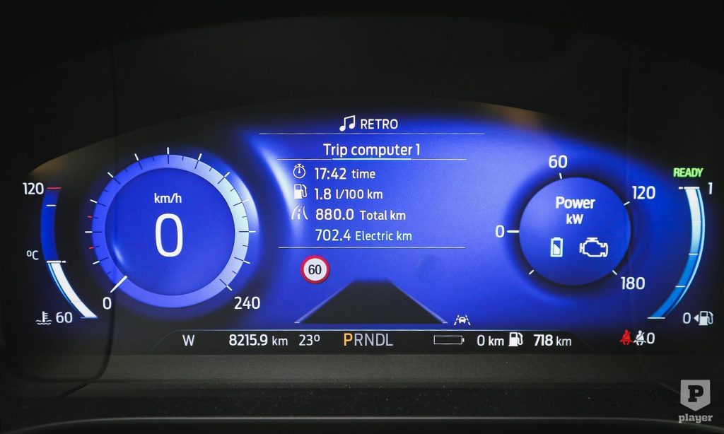 Hogy van ez? Megtettem 880 kilométert, de ebből csak 178-at benzinnel. Akkor mi ez a 17,4 literes tankolás? A plug-in hibrid Kuga tíz litert eszik százon, ha elfogy a villany, míg a fullhibrid csak hatot? Természetesen nem; ha elfogy a villany és a plug-in hibrid autó sima hibridként kezd viselkedni, az ő fogyasztása is hasonló lesz a fullhibridéhez, bár erre a súlytöbblet cipelésének energiaigényét, mondjuk 8-10 százalékot még simán rászámolhatunk. Az elektromos és nem elektromos kilométerek elszámolása viszont csalóka. Láthattuk fentebb a sima hibridnél, hogy ott is jelentős az elektromos hajtással megtett kilométerek száma. Ezeket tehát még le kell vonnunk a plug-in tisztán elektromos üzemidejéből és át kell tolni a benzines oldalra, így jön ki a plug-innél a 6,5 körüli hibrides realitás.