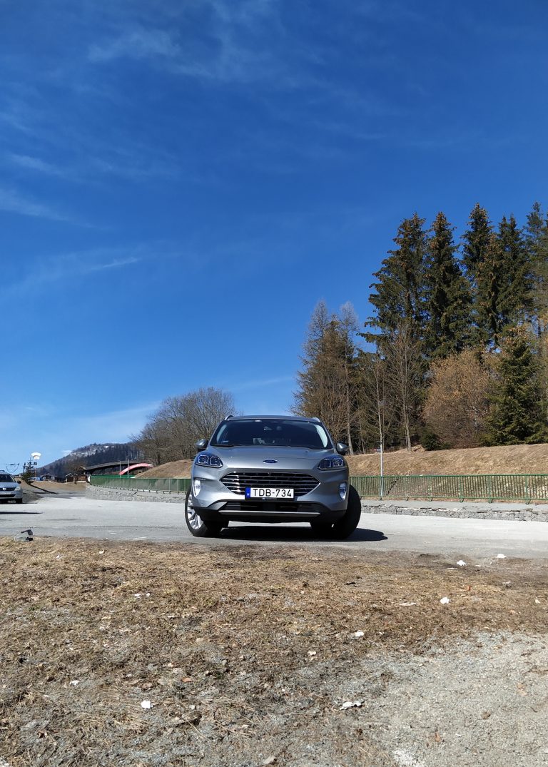 A fullhibrid Kuga tankja 54 literes, a 2,5 literes szívó benzinmotorhoz egy 1,1 kWh akkukapacitású elektromos motor csatlakozik. Mi március egyik legszebb hétvégéjén teszteltük, ami – lévén nemigen kellett fűteni, és a zene sem bömbölt végig az úton – szintén kedvezett a fogyasztásnak. Az autó technikájáról részletesebben is írunk hamarosan.