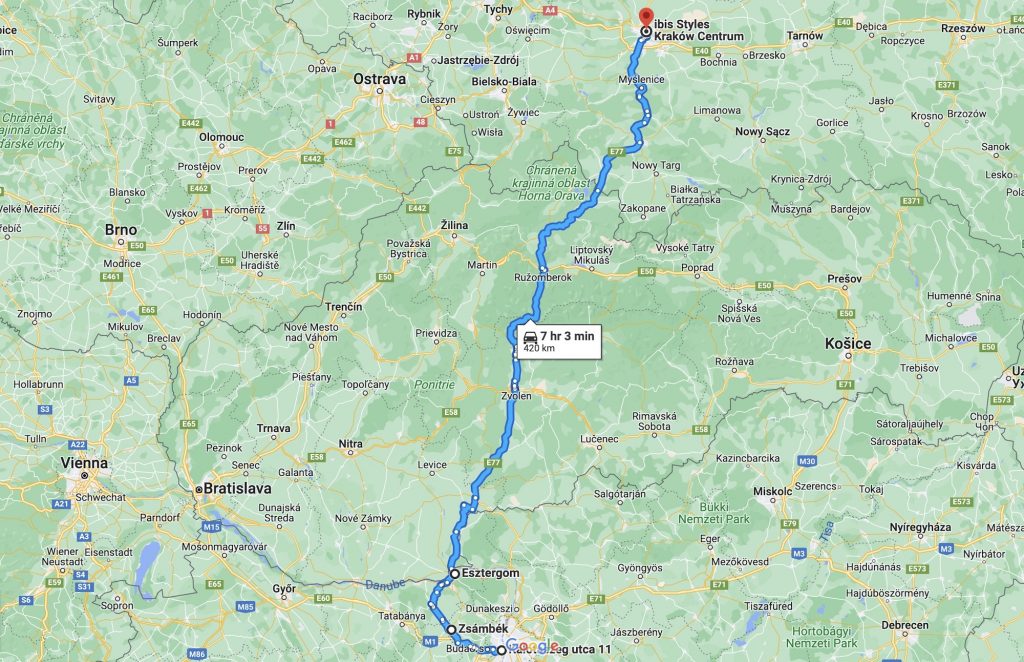 Krakkó alig több mint 400 km, a mi esetünkben 420, azaz oda-vissza 840. Ebbe még egy eltévedés is belefér, és még mindig simán belül maradunk az ezresen.