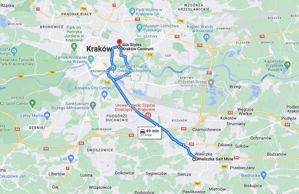 Eltévedés végül nem lett, ellenben Krakkóban a sűrű program miatt úgy döntöttünk, hogy a wieliczkai sóbányába autóval megyünk, ami plusz rádobott még 28 km-t az útra.