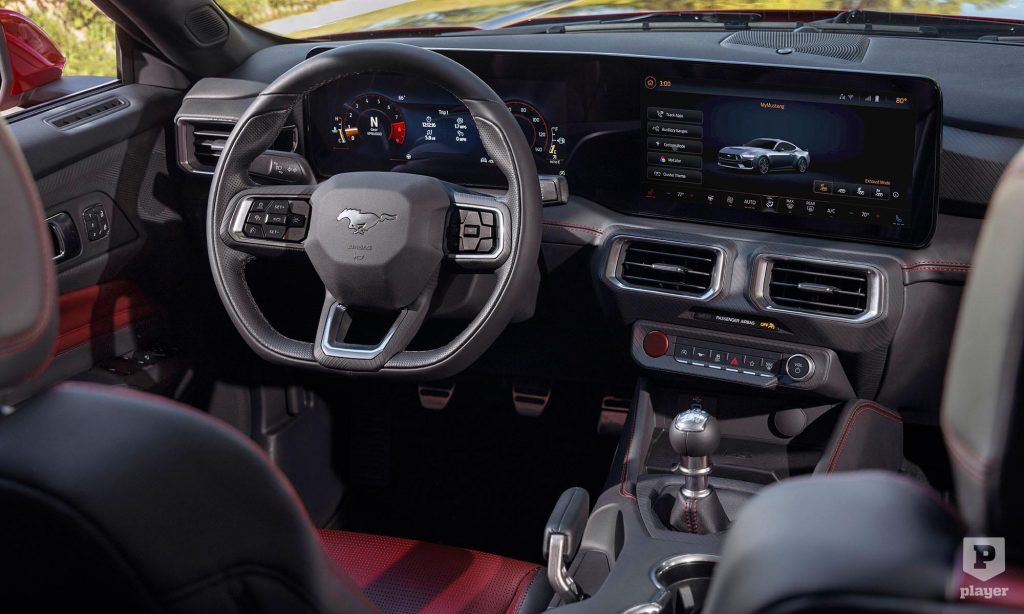 A Mustang továbbra is egy mindennapi használatra alkalmas sportautónak ígérkezik, ezért a vezetőt számtalan modern asszisztens segíti. A kabrió továbbra is elérhető, a kínálatban tízféle szín közül lehet választani, ezek közt a Yellow Splash és a képeken látható Vapor Blue az újdonság, a kerekek legalább 17, de akár 20 colosak is lehetnek.