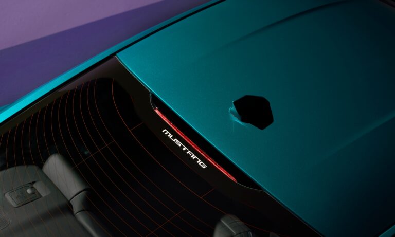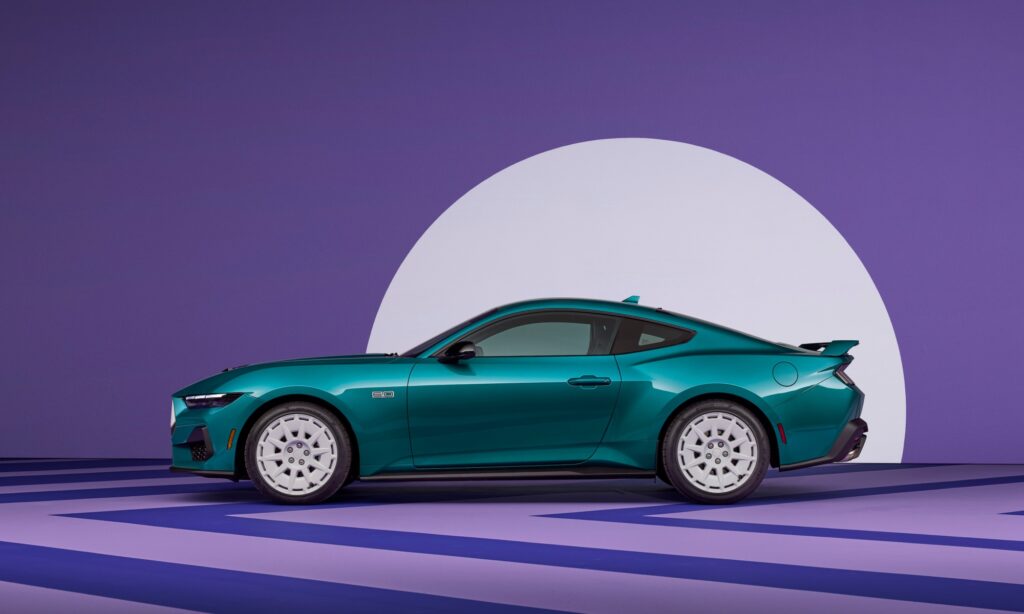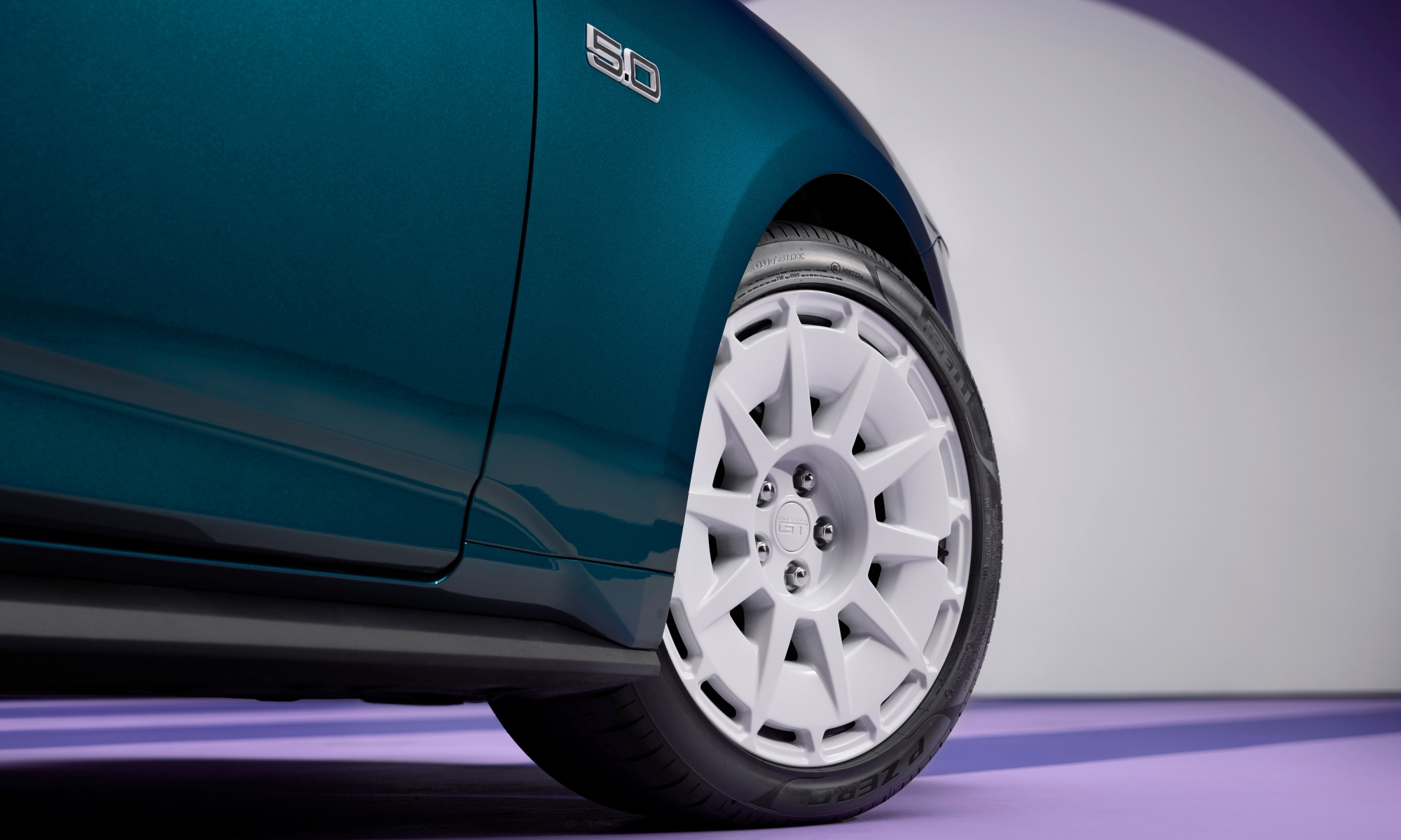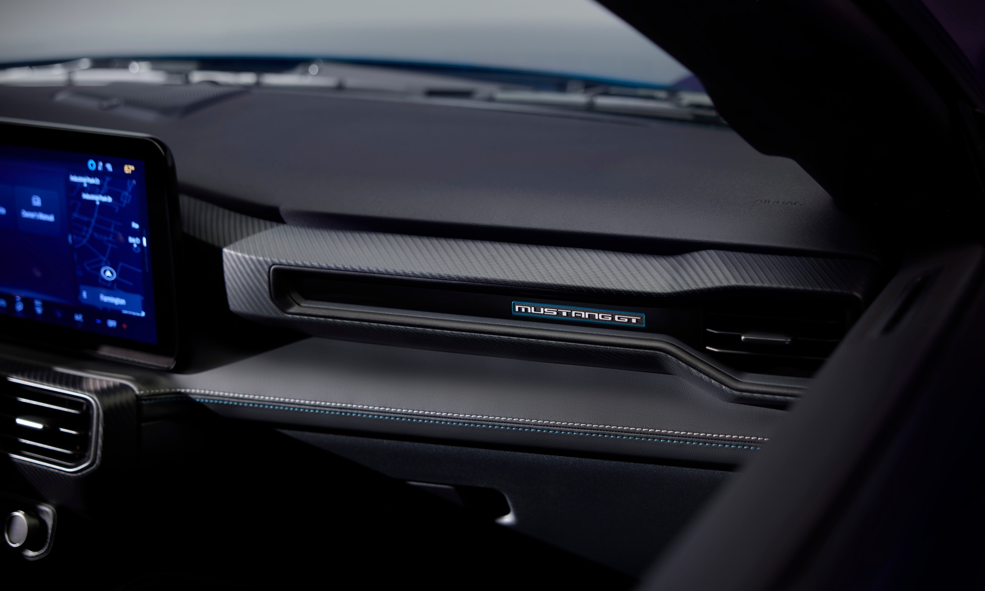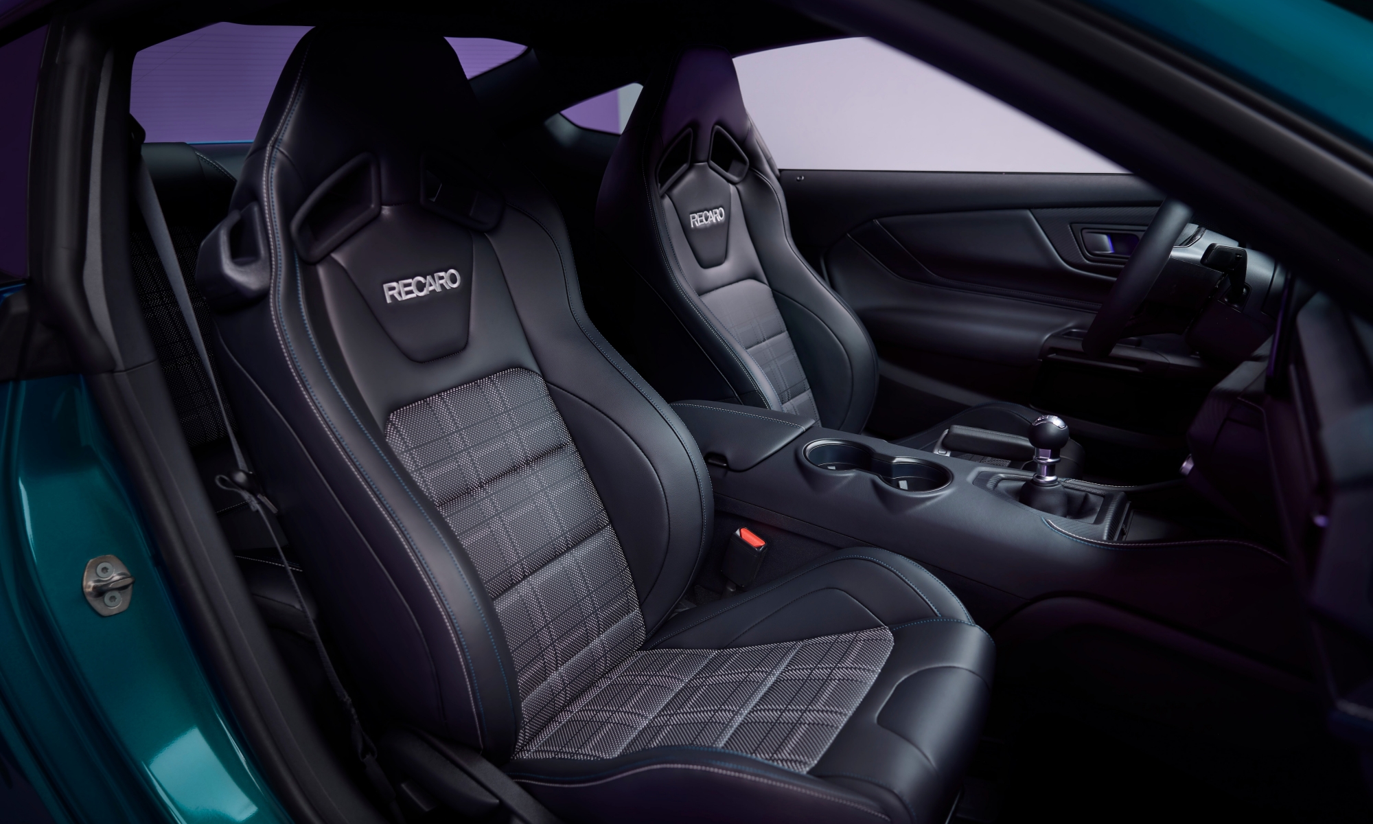 Kifejezetten ehhez a csomaghoz tervezték a 19 colos felniket, melyek Oxford fehér színe visszaköszön a Mustang és a GT logókon, valamint a hűtőmaszk betétjein és a sárvédők elmaradhatatlan 5.0 feliratán. Utasterében a varrások türkiz színűek, a fekete félbőr Recaro sportülések középső részén kockás szövetkárpit van, hogy egyértelmű legyen a múltidézés. A digitális felületeket is ezekhez az árnyalatokhoz lehet igazítani.