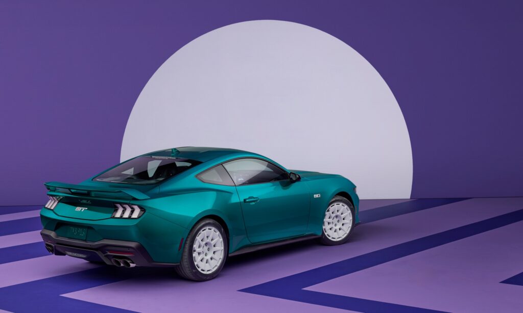 Merész türkiz fényezéssel, fehér felnikkel és kockás kárpittal kacsint vissza a nyolcvanas évekre a Ford Mustang GT-hez rendelhető FX Package.