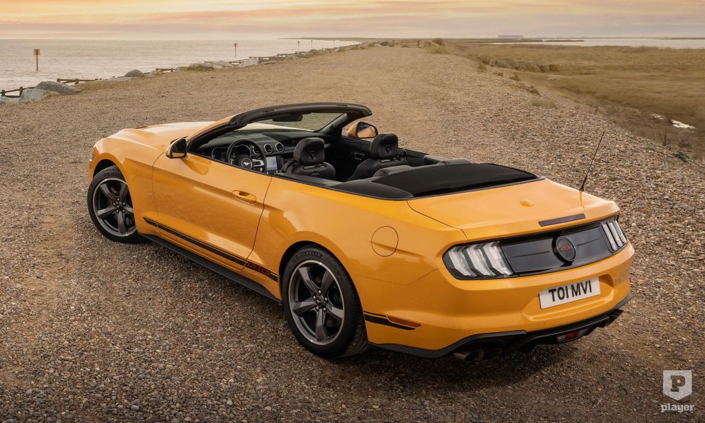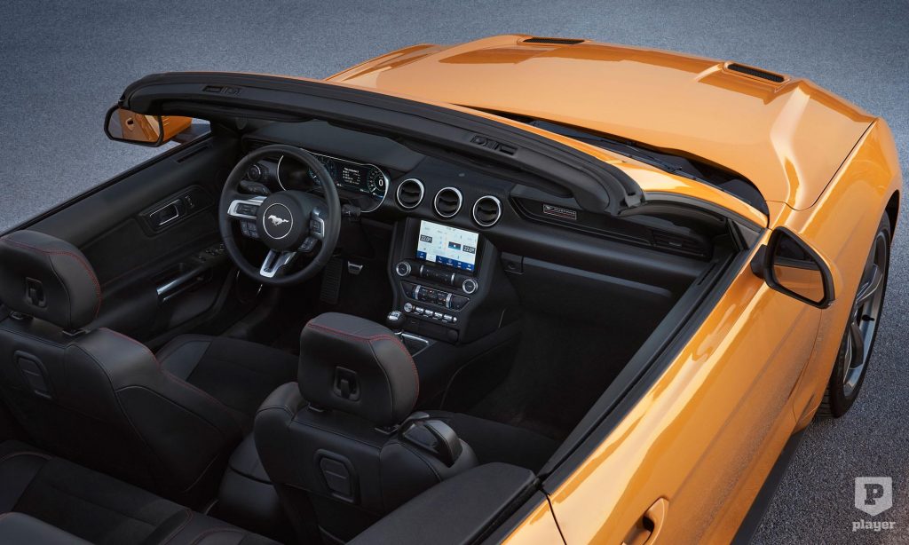 amit 8 másodperc alatt lehet lenyitni, és az őséhez hasonlóan fekete hűtőmaszkot és különleges versenycsíkokat kap a karosszériájára. A nyolcféle fényezés között a Grabber Blue és a Cyber Orange illenek a leginkább a Mustang hangulatához.