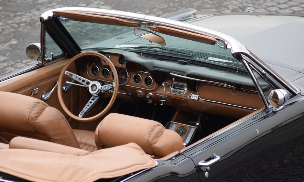 Henry Ford II a legidősebb unokája volt a márkát alapító Henry Fordnak. 1945-től az autógyártó elnökeként dolgozott, és franciaországi tartózkodására rendelték neki ezt a csodás Mustang GT kabriót, ami 1966-ban készült. A festése és a világos bőrkárpitja is eltér a szériától, mégis arról ismerni fel, hogy a kulcsaira és az övcsatjaira a HF2 monogram került.