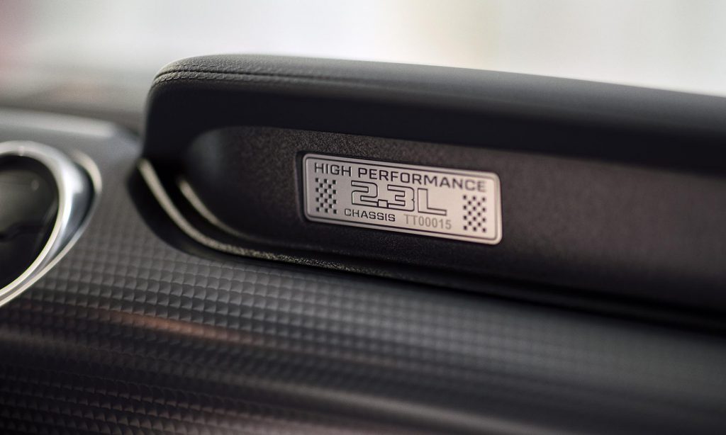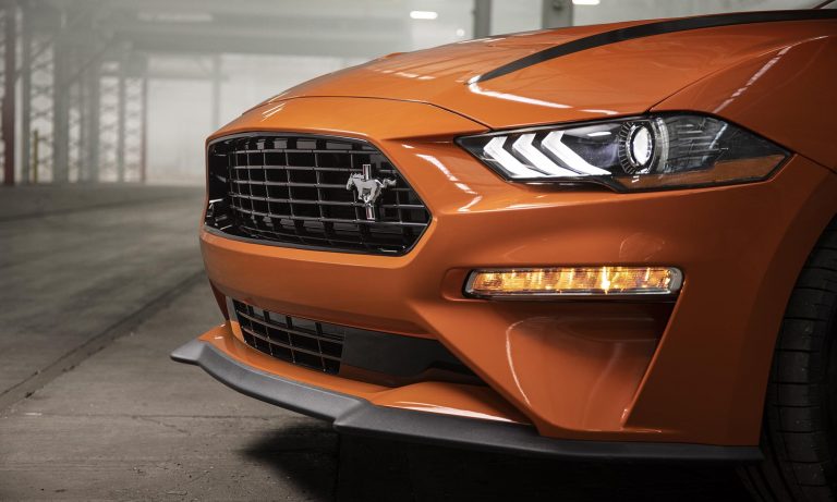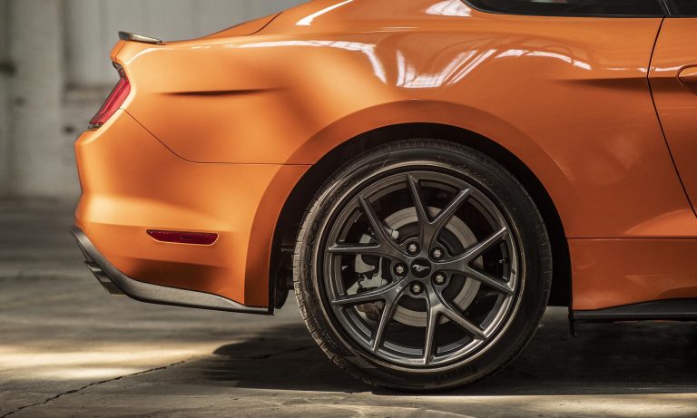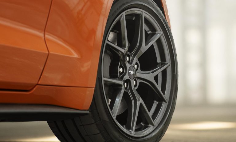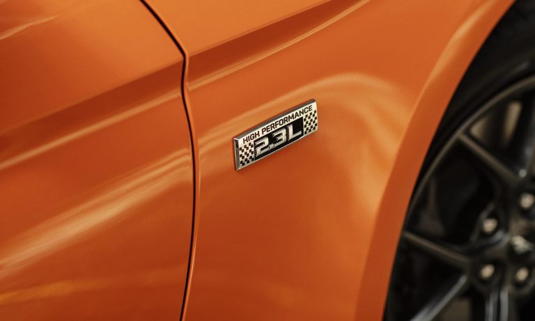hiszen a Mustang átdolgozott futóművet és fékeket, valamint egy új kipufogórendszert és önzáró differenciált is kap. Az izmosabb négyhengeres Mustangot az egyedi hűtőmaszkjáról tudod felismerni, ahol a paripás embléma oldalra került, de a Pirelli P Zero Corsa abronccsal szerelt 19 colos kerekek is árulkodnak.