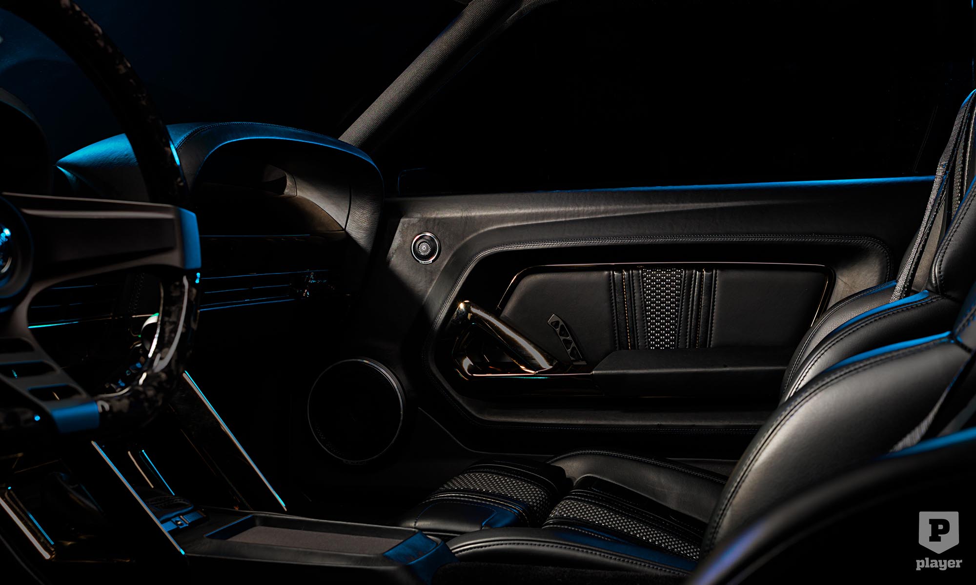 Gyönyörű klasszikus HRE kerekekre feszítették a Michelin Pilot Sport 4S gumikat, alá pedig akkora Brembo fékek kerültek, amik alighanem egy vonatot is megállítanának, a futómű elöl és hátul is teljesen független, állítható gátlókkal. A belseje ízlés kérdése, de az biztos, hogy ezzel a fekete Mustanggal nem lesz kérdés, ki a főnök.