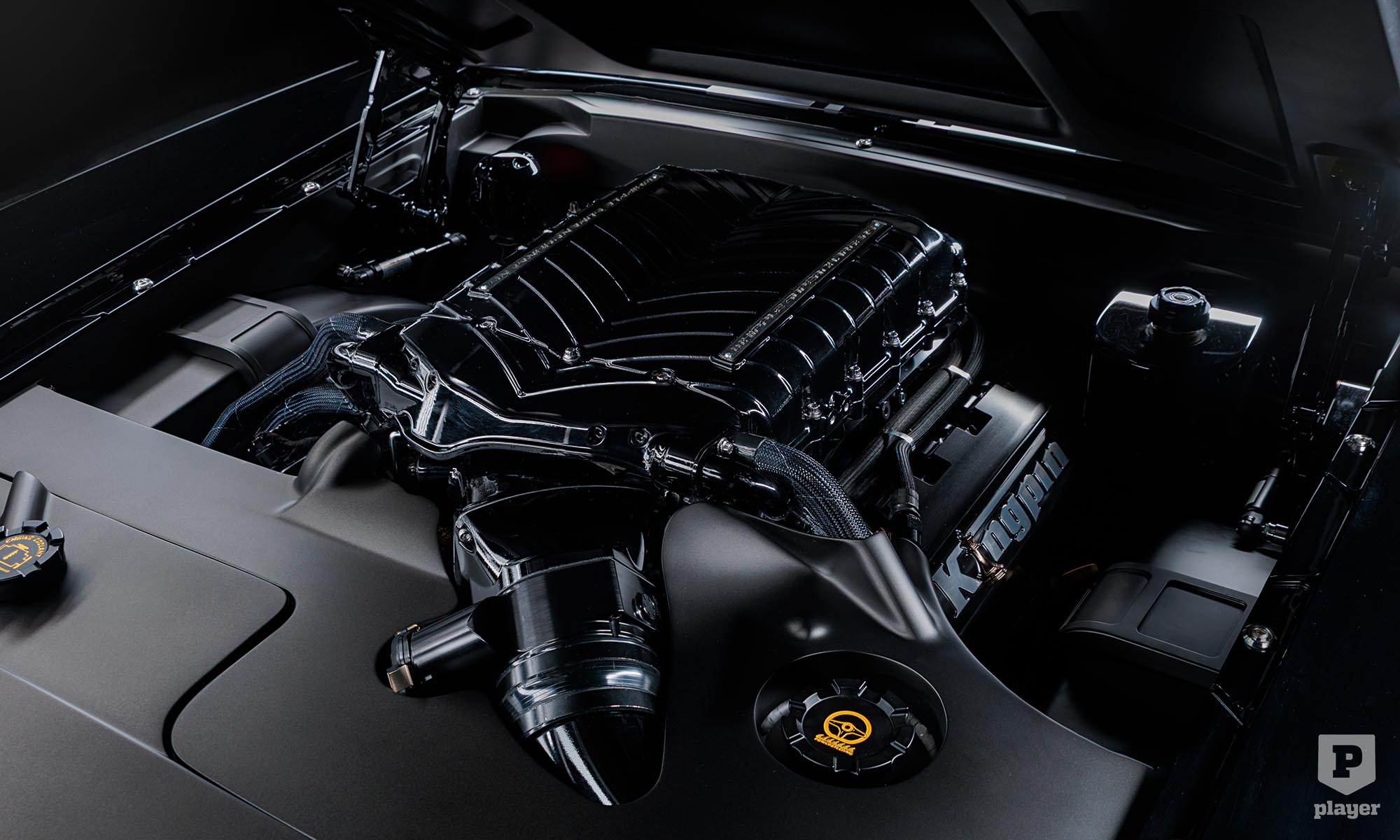 A motorja természetesen az 5 literes V8-as, amire jókora kompresszort akasztottak,