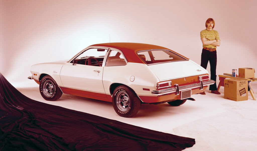 A hatvanas évek végén a bogárhátú Volkswagen és a japán kisautók eladásai lépéskényszerbe hozták az olyan nagy amerikai autógyártókat is, mint a Ford. A cégnek egyáltalán nem volt kiskocsija – az a korszak nem erről szólt Amerikában –, ezért 1969 januárjában az igazgatótanács jóváhagyta a terméktervezési bizottság javaslatát, hogy fejlesszenek egyet. Ez akkoriban nagyjából negyvenhárom hónapig tartott, de a Ford akkori elnöke, a legendás Lee Iacocca már ’71-ben piacra akarta küldeni az autót, ezért huszonöt hónapot adott a fejlesztésre. Elvárás volt még, hogy a kiskocsi tömege ne legyen több mint kétezer font (kb. 907 kg), és ne legyen drágább kétezer dollárnál.