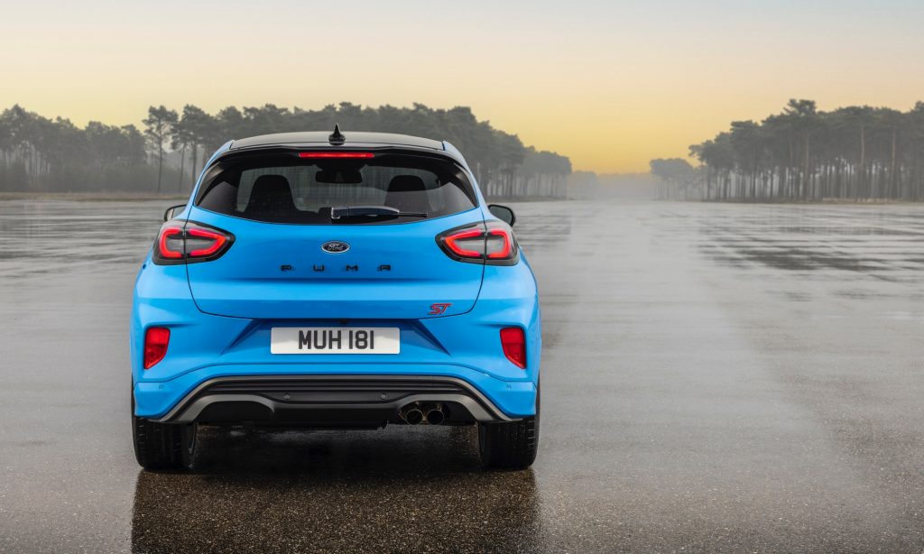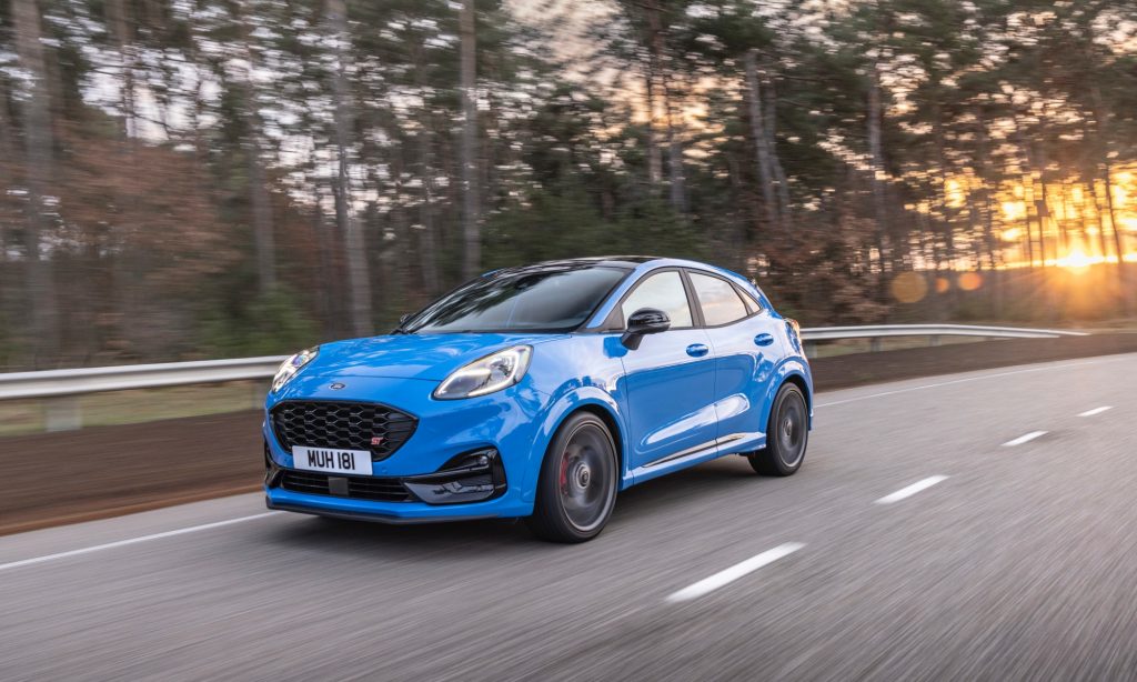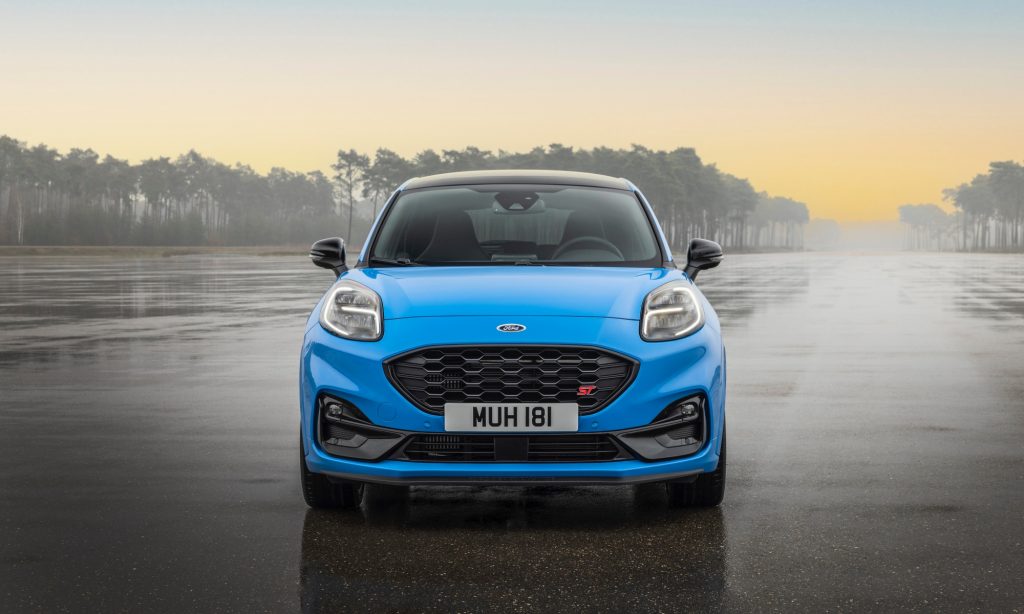 Úgy néz ki az élénk kékben pózoló Ford Puma ST, mintha egy Fiesta beöltözött volna Porsche Macannak.