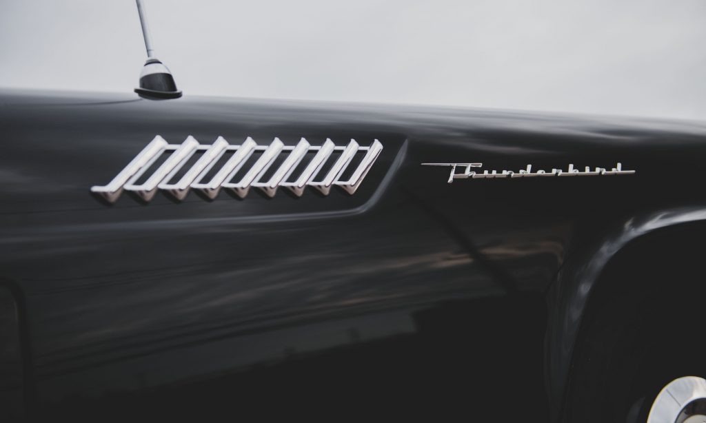 Megküzdöttek a névválasztással, a folyamat során olyan lehetőségek kerültek a kukába, mint az Apache, az Eagle vagy a Tropicale és Hawaiian. A Thunderboltot sem érezték igazán erősnek, de a Ford egyik formatervezője bedobta a Thunderbird nevet. Ez az észak-amerikai őslakosok legendás lényére utal, melyet a hatalom és az erő természetfeletti madarának tartanak. A másik pletyka szerint a kaliforniai Rancho Mirage-ban található Thunderbird Country Club ihlette a nevet.