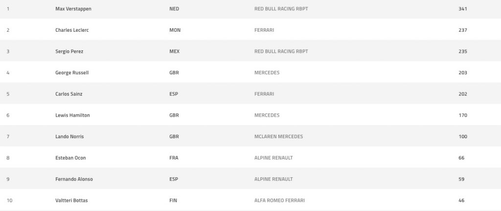 Leclerc egy darabig nyomorgatta Pérezt, de előzni nem tudott, sőt egy elfékezés után másodperc fölé nőtt a hátránya, onnan pedig a mexikói pilóta szépen behúzta a futamot. Viszont Pérez az utolsó biztonsági autós fázis után a gyanú szerint korán rajtolt újra – ezt a verseny után vizsgálják majd. Reálisan öt másodperces büntetést kaphat – csakhogy több mint öt másodperccel nyert.