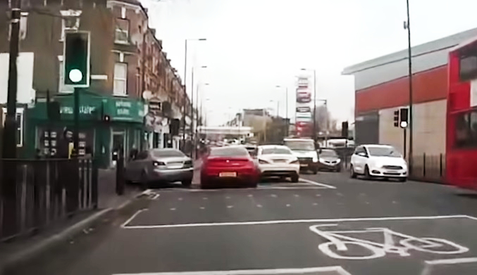 Jobbnak tűnik egy efféle elhúzható kordon, mint a szokásos sorompó: nem lehet átbújni alatta, és könnyebben is látható. Sajnos azonban ebből itt nem sok érvényesül: az első robogós simán kikerüli az éppen behúzott korlátot – és ő még figyelmesnek számít a mezőnyben.