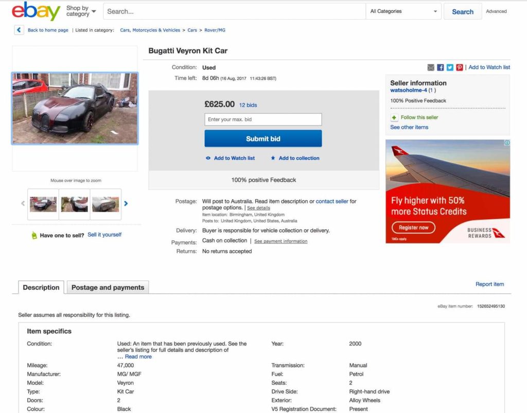 A legnagyobb vicc az egészben, hogy alig volt fenn pár napot a cucc az online piactéren, már vevőre is talált. Ha jobban belegondolunk, emberünk egy Veyronra nyomokban hasonlító, működőképes verdát árult az eredeti árának 0.0006 százalékáért, így biztos létezik olyan retorika, amivel meg lehet magyarázni azt, hogy végül sikerült eladnia.