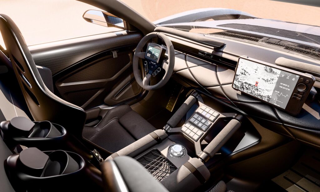A V8-as motorja nem kevesebb, mint 1100 lóerőre és 1150 Nm-re képes, ami rendesen megcsavarja a 18 colos kerekekre feszített off-road abroncsokat. A megállás sem jelent gondot a Brembo versenyautókba szánt fékrendszerével, a bukócsővel és négypontos övekkel a vezető biztonsága is motorsport-szintű.