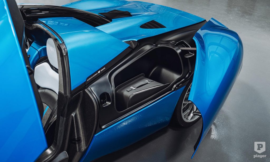 A súlycsökkentés érdekében a kézzel kiszerelt tetőpaneleket az autó orrában lévő tárolóba lehet tenni, és hogy ne vesszen el a csomagtér,