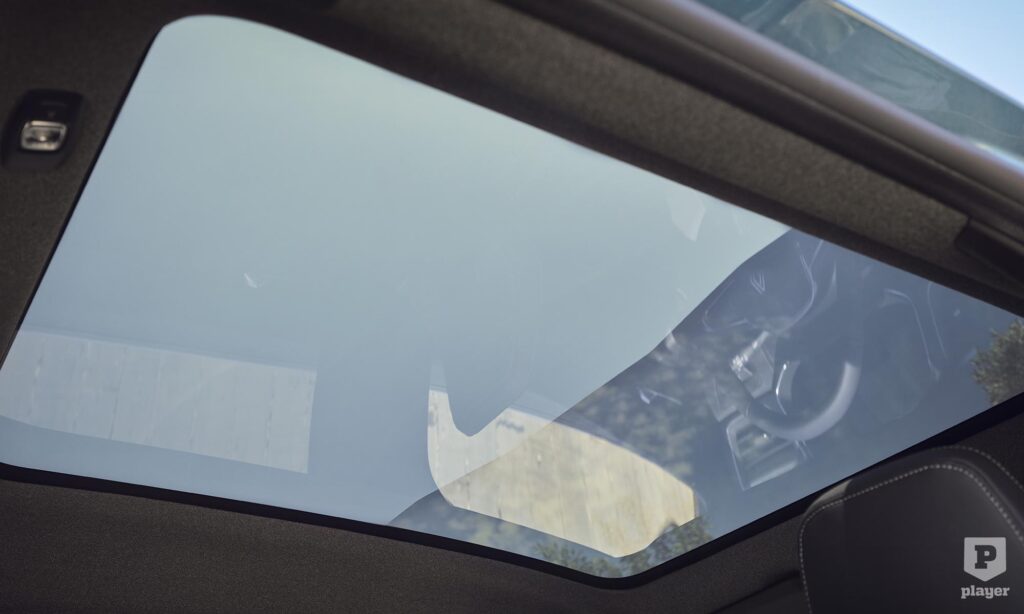 A legjobban mégsem ez tetszett az autóban, hanem a gombnyomásra vagy akár hangvezérléssel is elsötétíthető panorámatető, amit eddig csak sokkal drágább autókban láttunk. Az elektrokromatikus elven működő Solarbay arra jelent megoldást, amikor nem akarják a fejteret csökkenteni az elhúzható árnyékolóval, de nem is hagyják az üveg alatt megfőni az utasokat. A nagyméretű panorámatető ezért szegmensenként elhomályosítható, ami hővisszaverő felületével nemcsak árnyékolja az utasteret, de rendkívül látványos is.