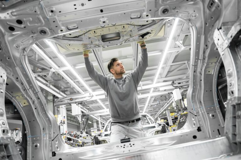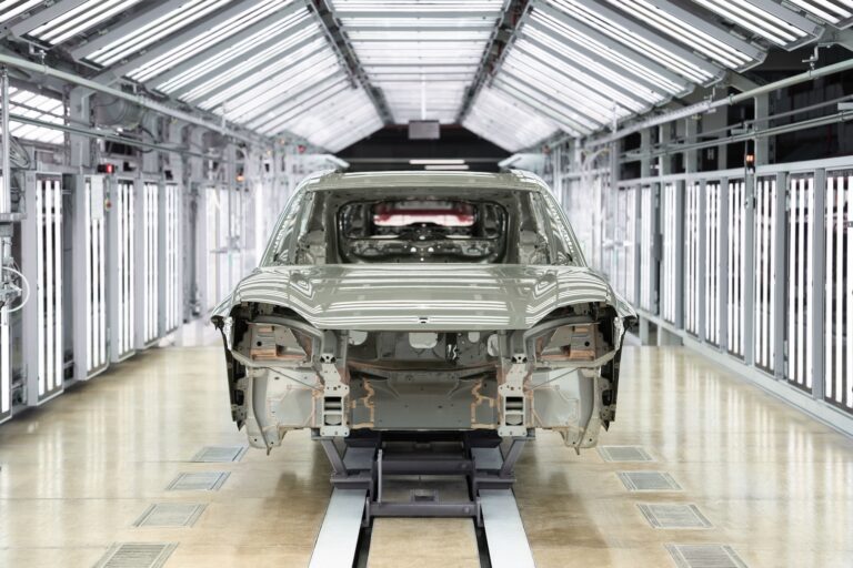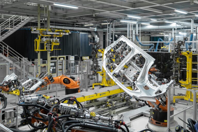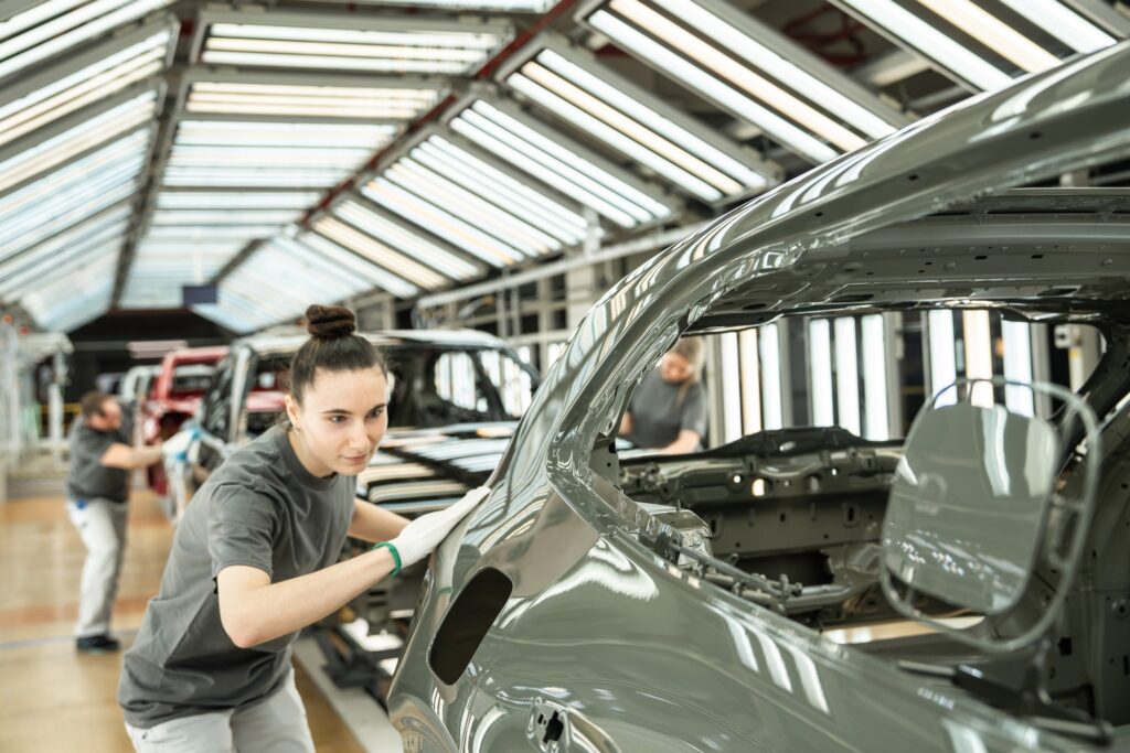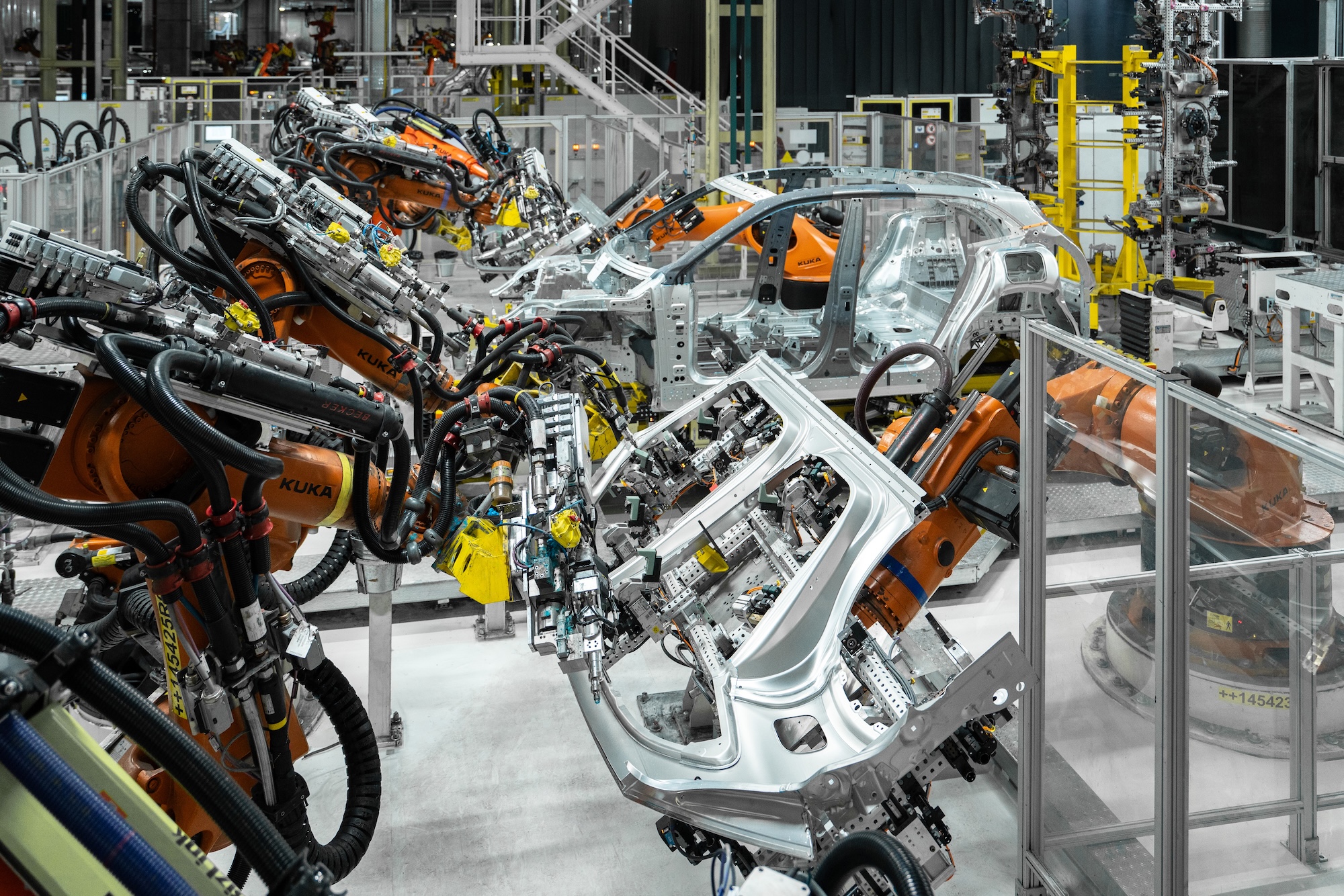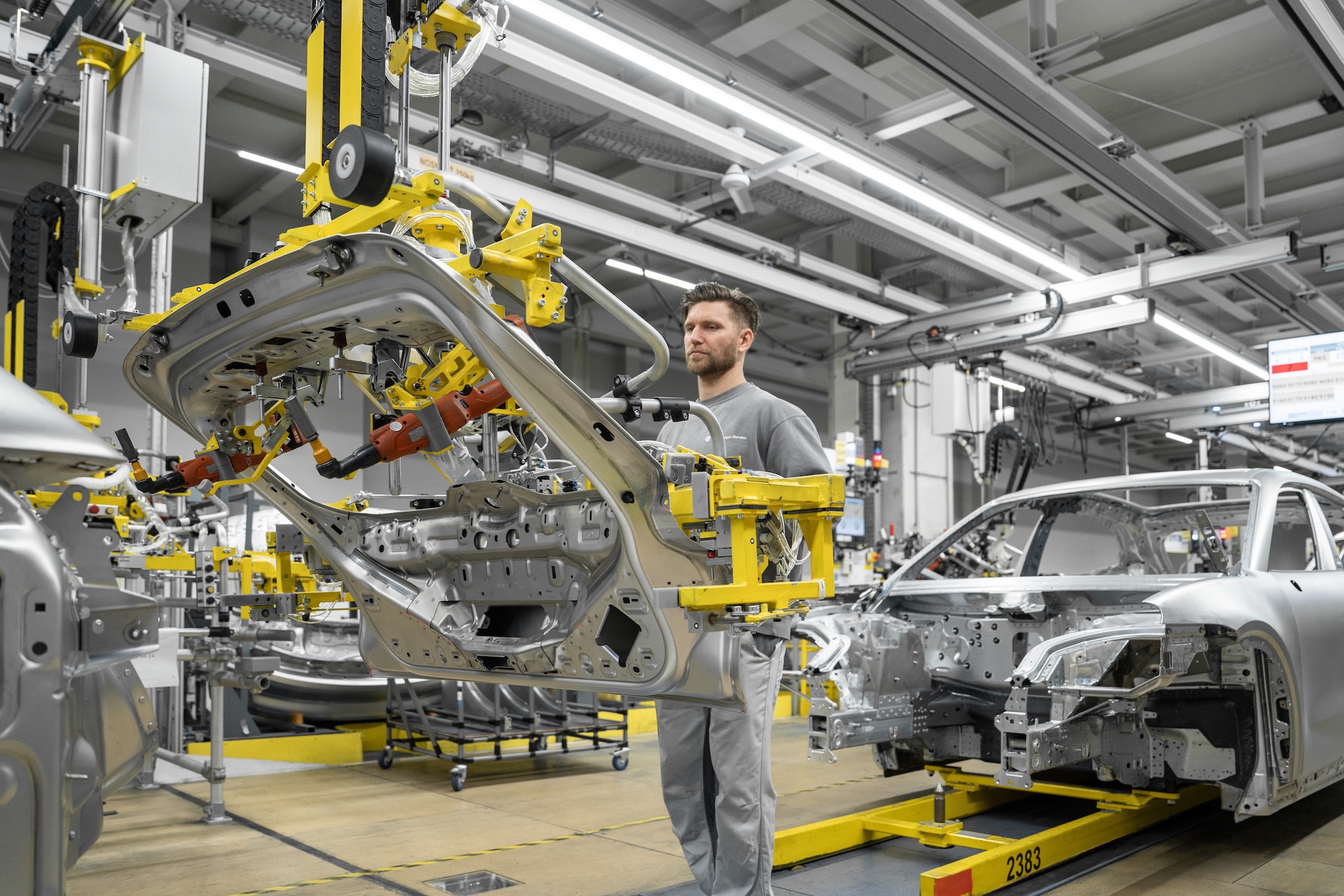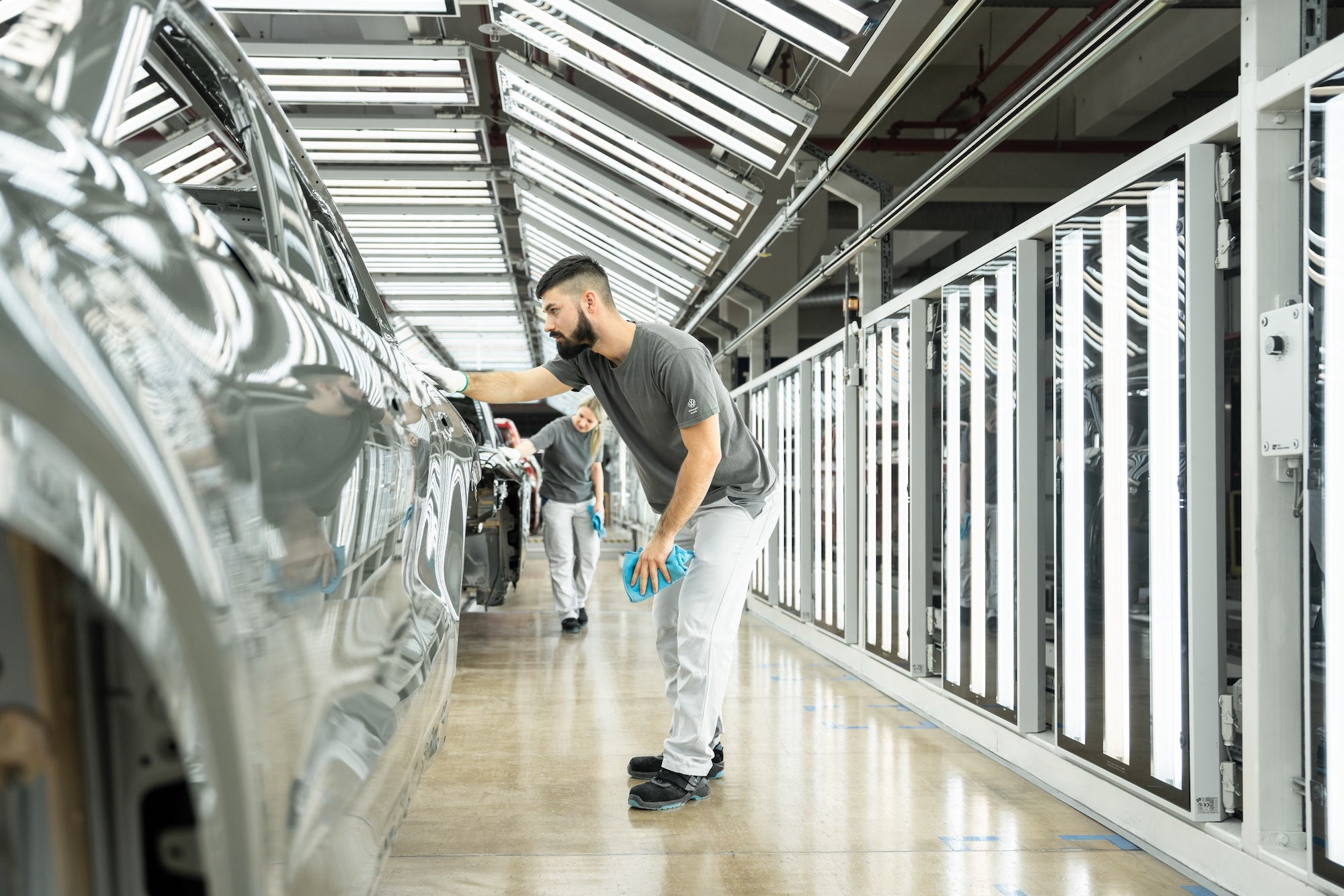 Ahogy az akkugyárban, itt is folyamatos a minőségellenőrzés, a karosszéria esetében sok más mellett az illesztéseket és a felület minőségét vizsgálják. Ha minden stimmel, az autó mehet a fényezőműhelybe.