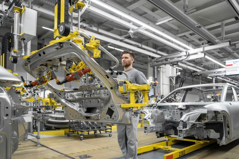 A jelentősen kibővített gyár csarnokainak összterülete már meghaladja a kétmilló négyzetmétert, és a VW Csoport négy márkájának 12 modelljét készítik itt, ezen belül a Cayenne Electricet az új „platformcsarnokban” gyártják. Itt építik fel a gördeszkaszerű alvázat, rajta az akkupakkal, majd erre szerelik fel az oldalpaneleket, a tetőt, az ajtókat, a motorháztetőt és a csomagtér ajtaját. Ezek a karosszériaelemek a szinte teljesen automatizált, Európa egyik legkorszerűbbjének számító sajtolóüzemből származnak, ahol a főprés maximális ereje 91 ezer kilonewton (kN).