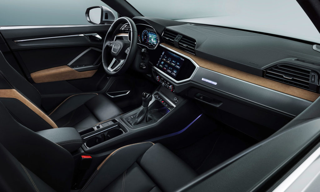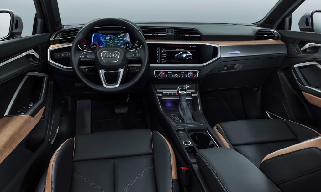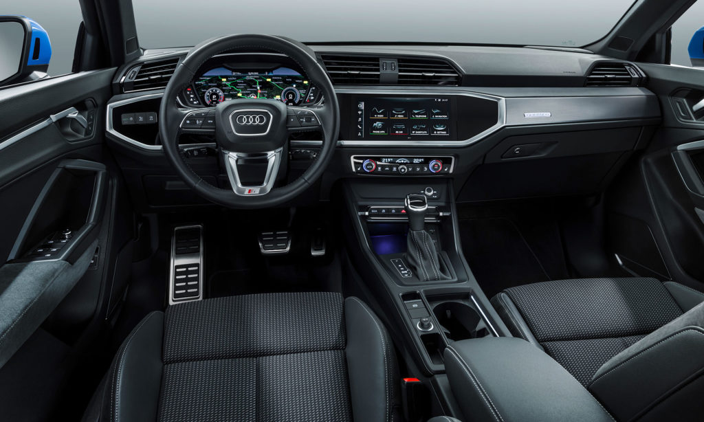 A legtöbb új Audihoz hasonlóan a Q3-hoz is széria a színes képernyős műszeregység, ami alapesetben 10,25 colos, de felárért akár 12,3 colos is lehet, míg a középen lévő érintőképernyő 8,8 vagy 10,2 colos méretben rendelhető. A kütyüarzenálnak része a fedélzeti 4G elérés és wifi, az USB Type C csatlakozó, az Android Auto és Apple CarPlay támogatása és a 680 wattos Bang & Olufsen hifi is, okostelefon-alkalmazással távolból is nyitható az autó.