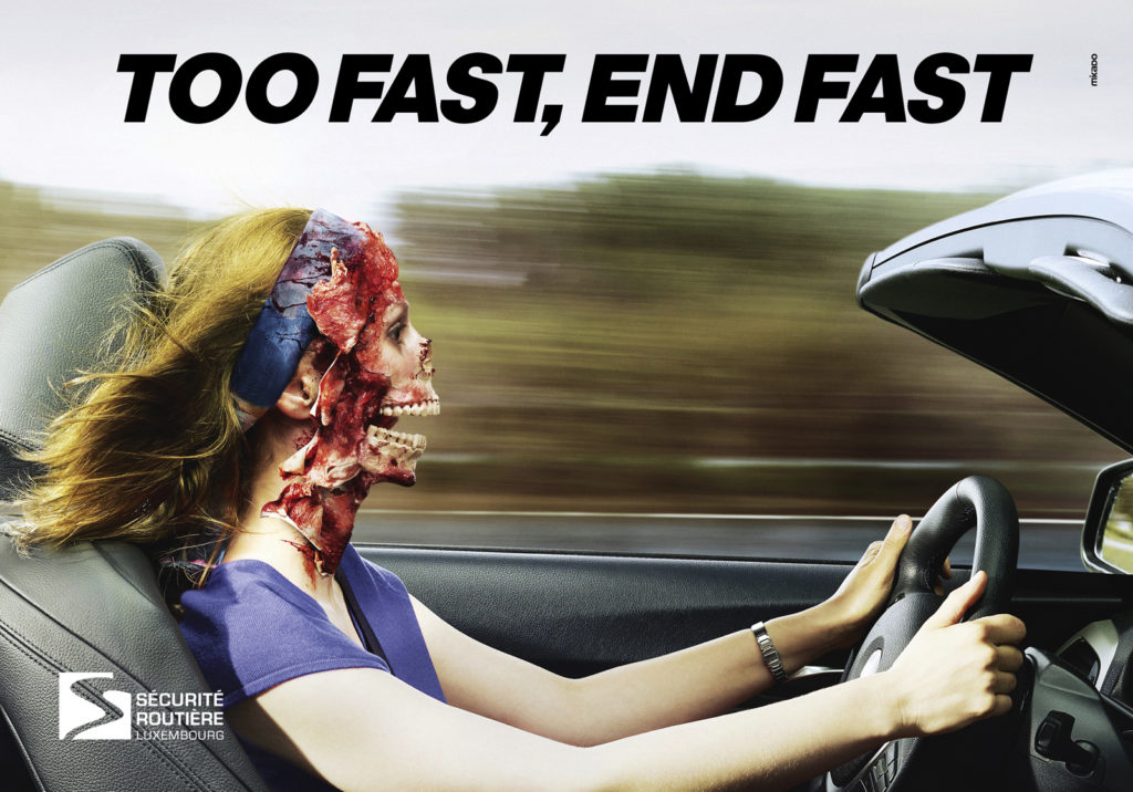 A gyorshajtás elleni hirdetés üzenete könnyen érthető és kellően drámai: