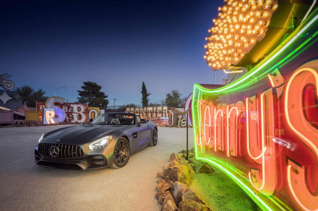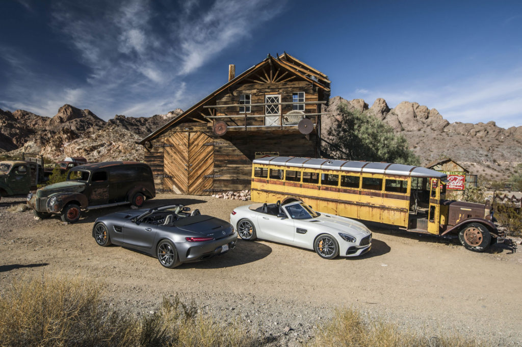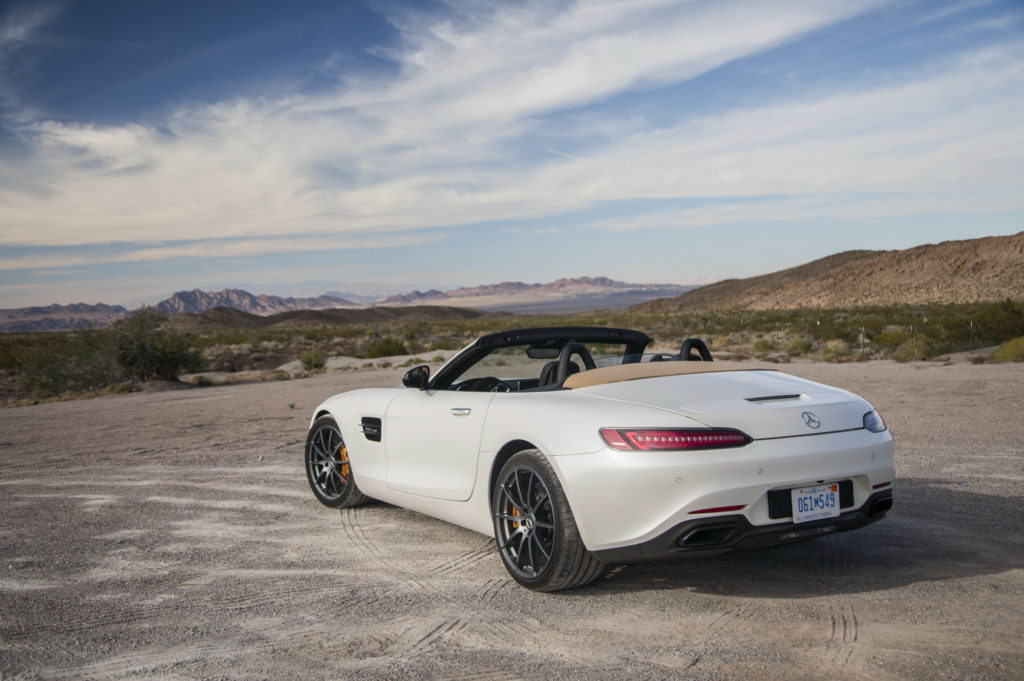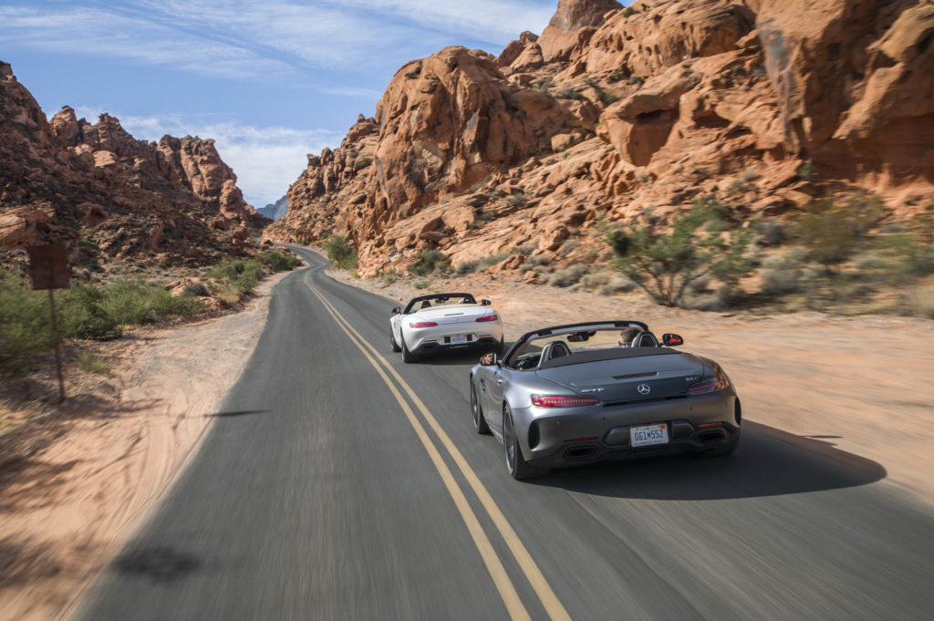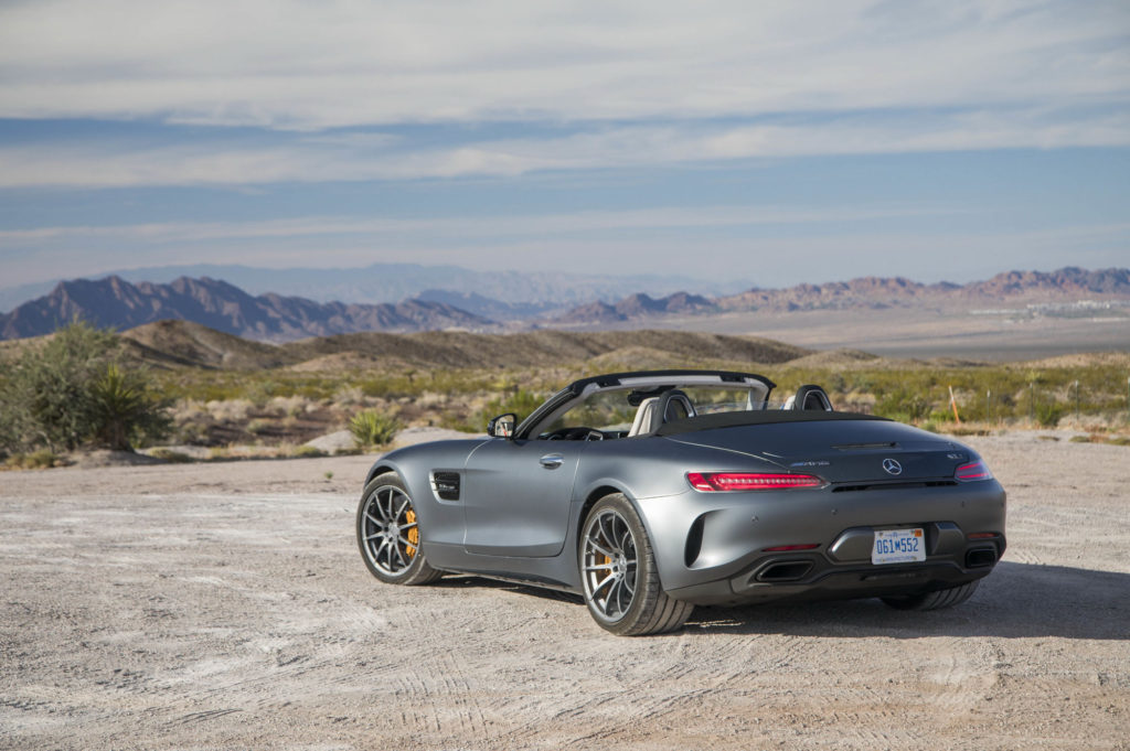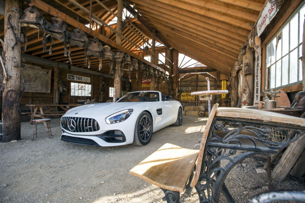 A végtelenbe nyúló amerikai országutakon készültek az AMG GT vászontetős változatának képei, a sajátos hangulatú fotókon pedig nemcsak az autó, hanem a környezete is lenyűgöző.