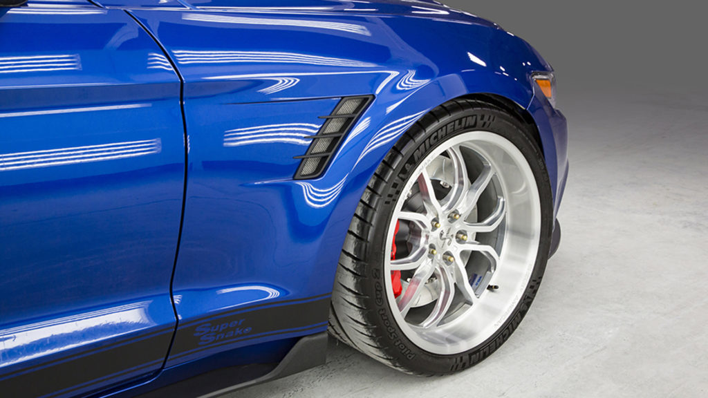 Carroll Shelby nyomdokain izmosítja a Fordokat a Shelby American, és most kijöttek a Ford Mustang legújabb változatával, ami minden eddigit lesöpör az asztalról. Az 50. évfordulós Super Snake kiadás alapjára épül, de alapjában különbözik tőle, hiszen úgy kiszélesítették, hogy hátul csak a 20 colos kerekek nyomtávja 10 centivel nőtt.